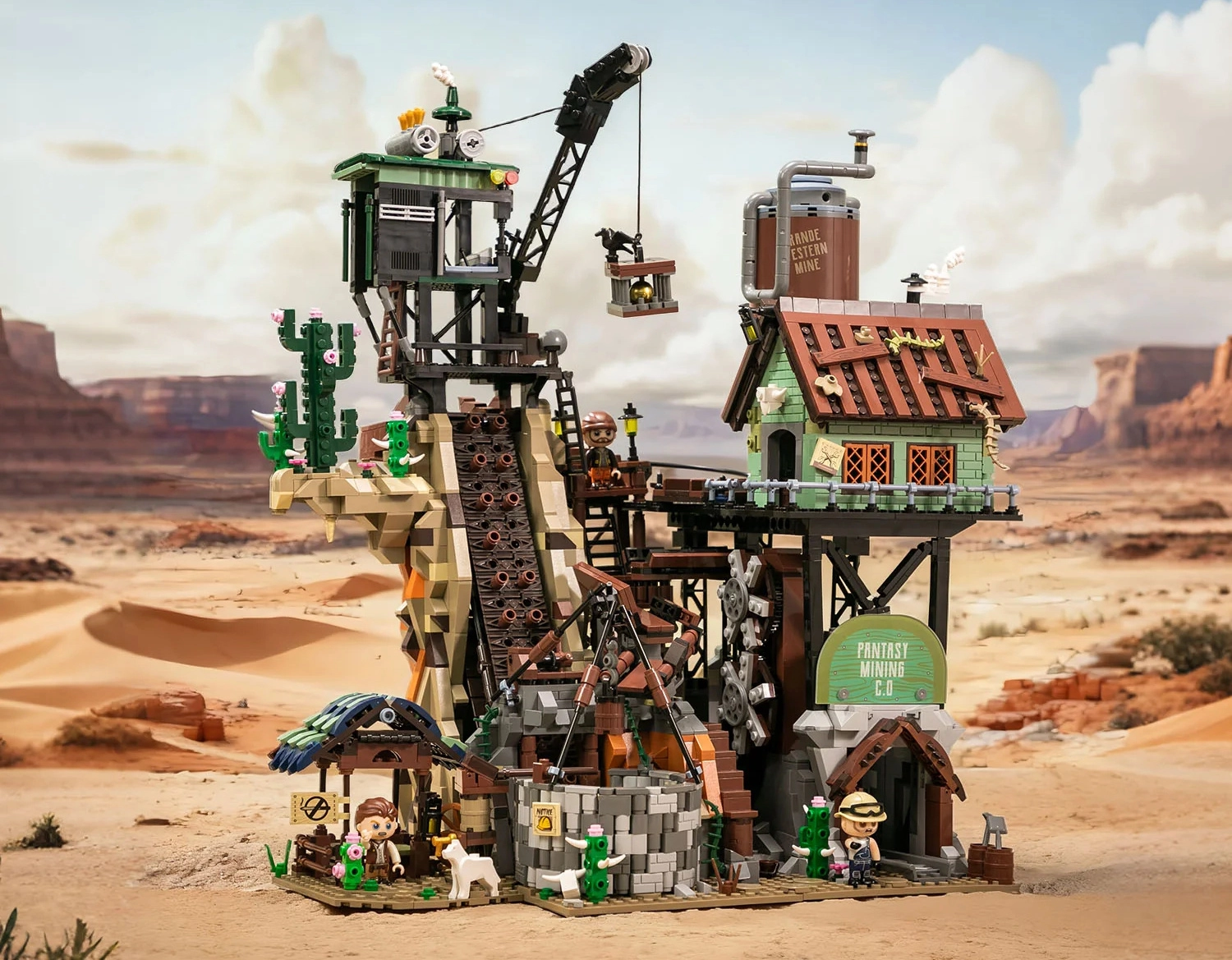 Konstrukcijski set Pantasy Western Mine prenijet će vas u eru zlatne groznice. Drvene konstrukcije, strojevi, rampe i ulazni tunel stvaraju impresivnu dioramu koja nakon sastavljanja mjeri otprilike 40 × 32 × 46 cm. Zahvaljujući mehaničkom sustavu GBC (Great Ball Contraption) „zlatne“ kuglice neprekidno se kreću stazom i vraćaju na početak, što pruža fascinantan prizor.