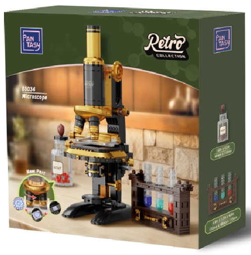 Konstruktorski set PANTASY Retro Microscope spaja strast prema znanosti i dizajnu. Bogati detalji podsjećaju na mjedene i metalne dijelove starih instrumenata iz 19.–20. stoljeća, a nakon sastavljanja postaje reprezentativan eksponat na polici ili stolu. Zahvaljujući pažljivoj izradi i kvalitetnoj ABS plastici model je izdržljiv i vizualno dojmljiv.