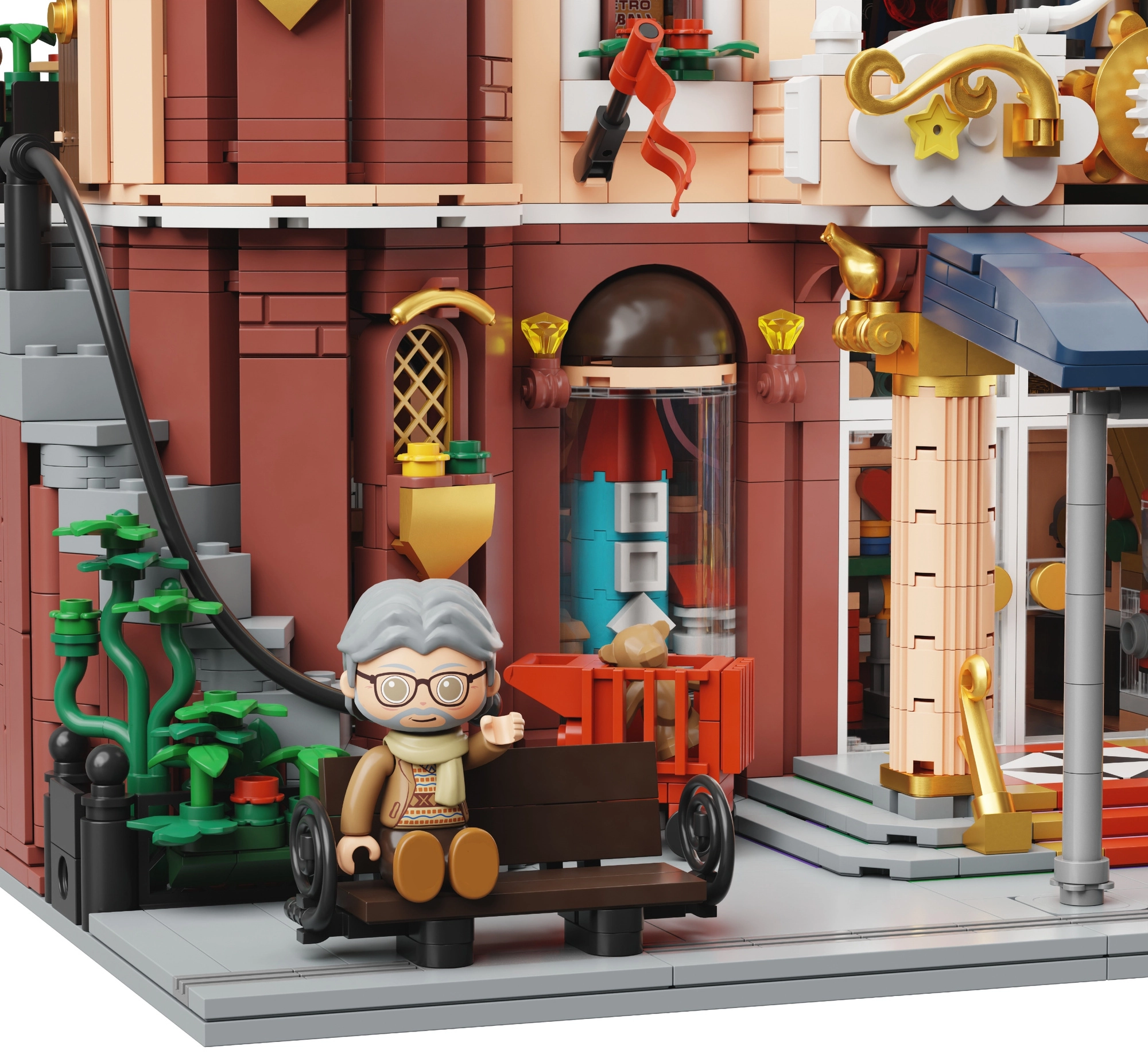 Ovaj jedinstveni set u retro stilu spaja prekrasnu arhitekturu s promišljenim funkcijama za igru i izlaganje. Kremasto-crvena fasada, ukrasne tornjiće i realistični izlozi stvaraju autentičnu atmosferu starogradske trgovine igračkama. Konstruktorski set idealan je za kolekcionare i kreativne graditelje koji traže bogate detalje i modularnu konstrukciju.