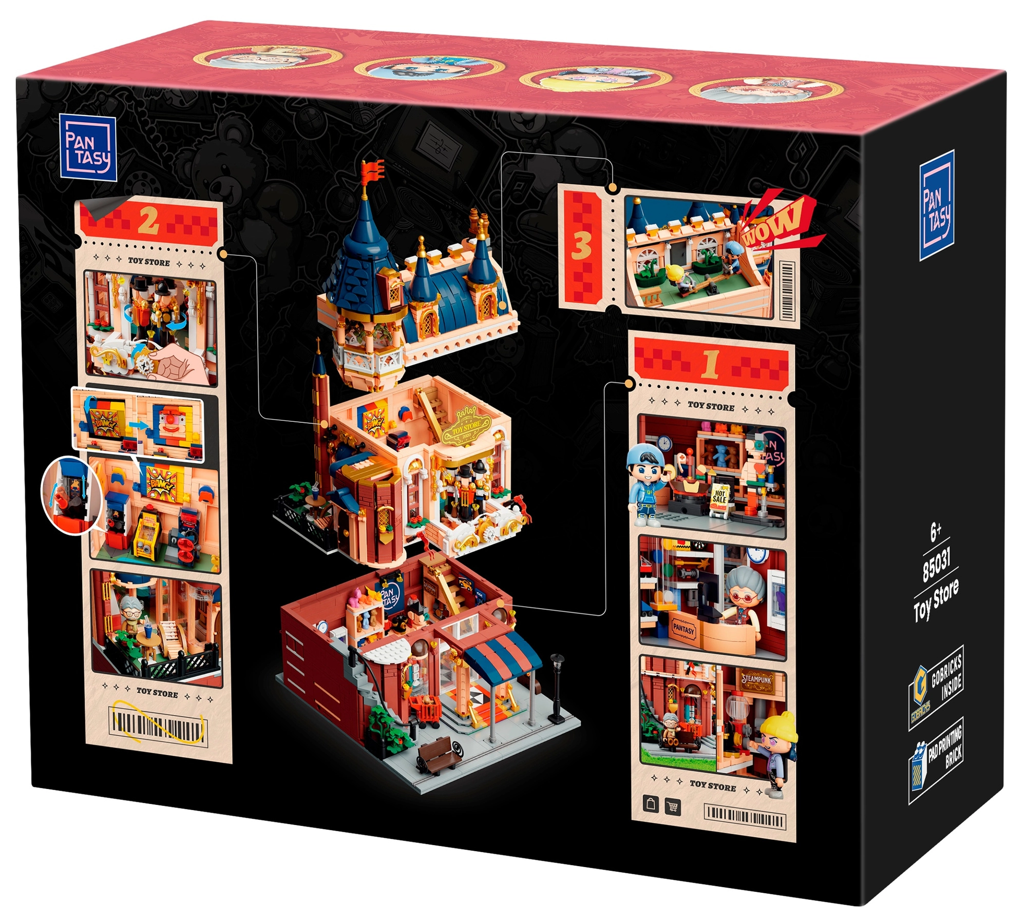 Sastavite kultnu, trokatnu trgovinu igračkama marke Pantasy. Ova detaljna modularna zgrada s bogato opremljenim interijerima nudi kreativnu gradnju i stilizirano izlaganje. Čeka vas 2978 dijelova, 4 minifigurice i mnoštvo nostalgičnih detalja za sate zabave i mašte.