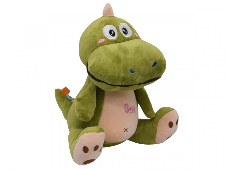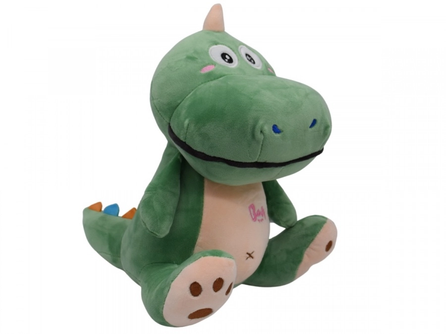 Slatki sjedeći plišani dinosaurus veličine 30 cm idealan je kao mazni prijatelj za krevetić i kao dekoracija dječje sobe. Dostupan u dvije nijanse zelene, s sigurnim vezenim detaljima i vrlo mekanom, pufastom površinom za maženje, igru i poklanjanje.