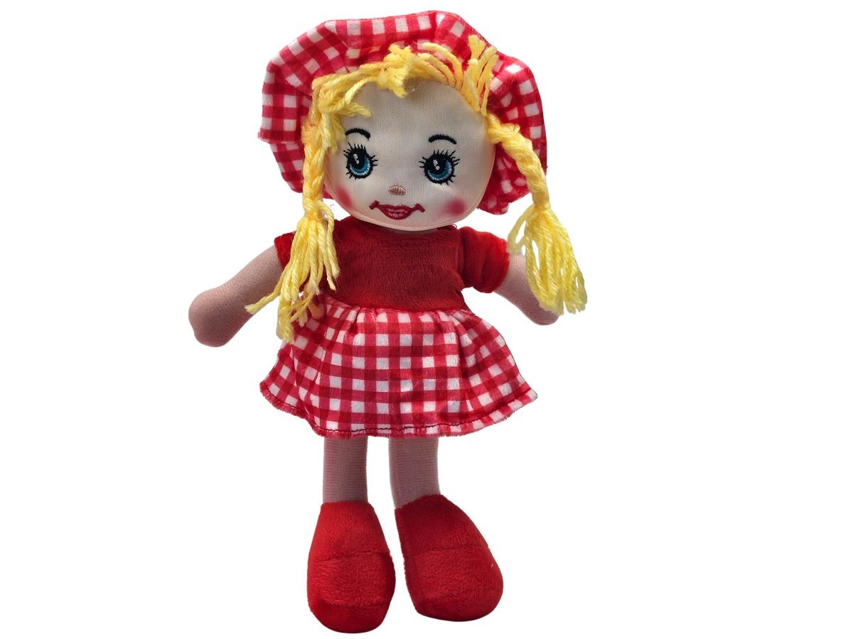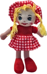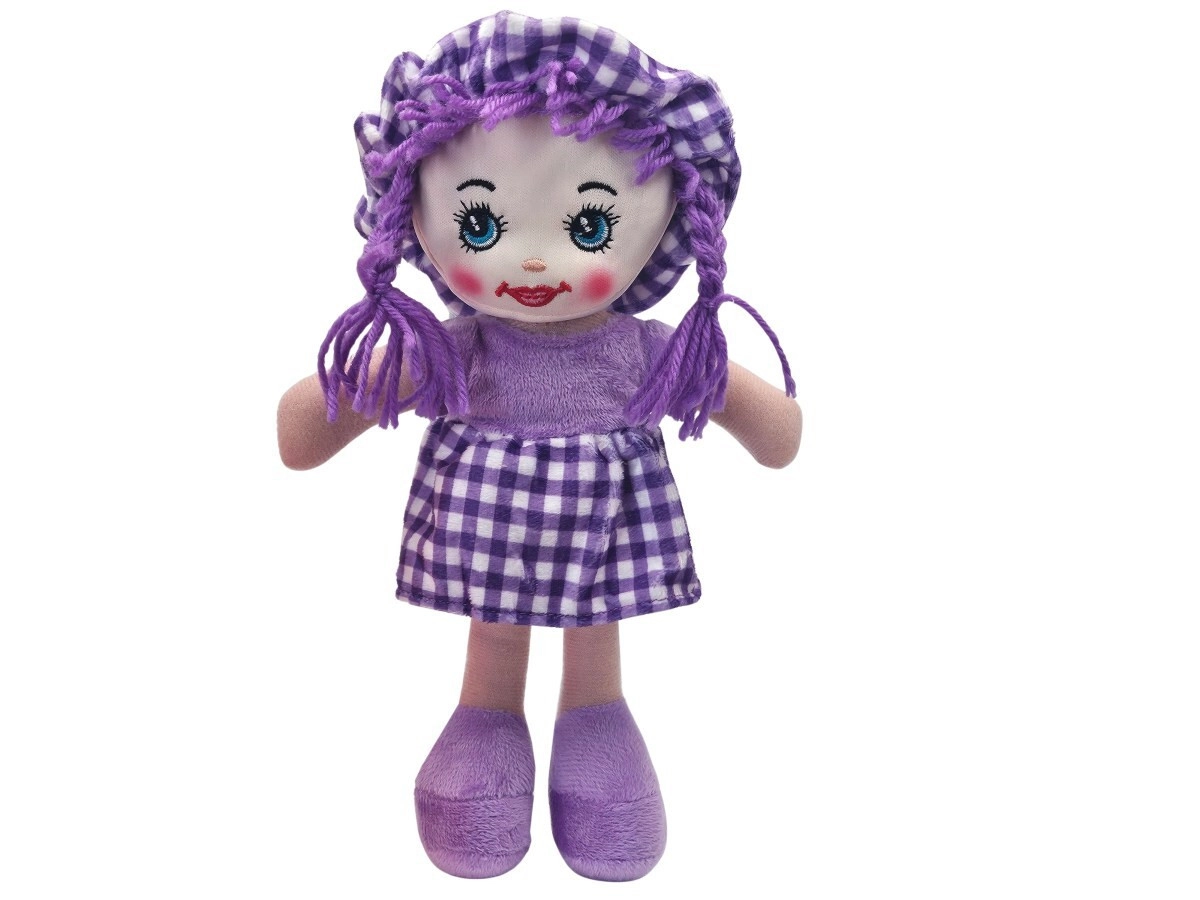 Tkanasta lutka Julka mekana je i lagana, pa dobro leži i manjim rukama. Zahvaljujući vezenim očima i ustima igra je sigurna i bez sitnih dijelova. Lutka je odjevena u stilski kariranu haljinicu s usklađenom kapicom i ima ispletenu končanu kosu.