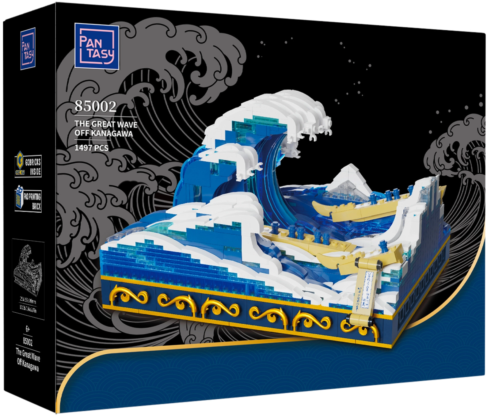 Ovaj premium građevni set Pantasy donosi u vaš dom legendarnu scenu uzburkanog oceana s čamcima i veličanstvenim krivuljama valova – posvetu majstorskom drvorezu Veliki val kod Kanagawe. Zahvaljujući promišljenoj slojevitoj gradnji, prozirnim elementima vode i dekorativnom postolju dobit ćete dojmljiv izložbeni model koji će se istaknuti na polici, radnom stolu ili u vitrini.
