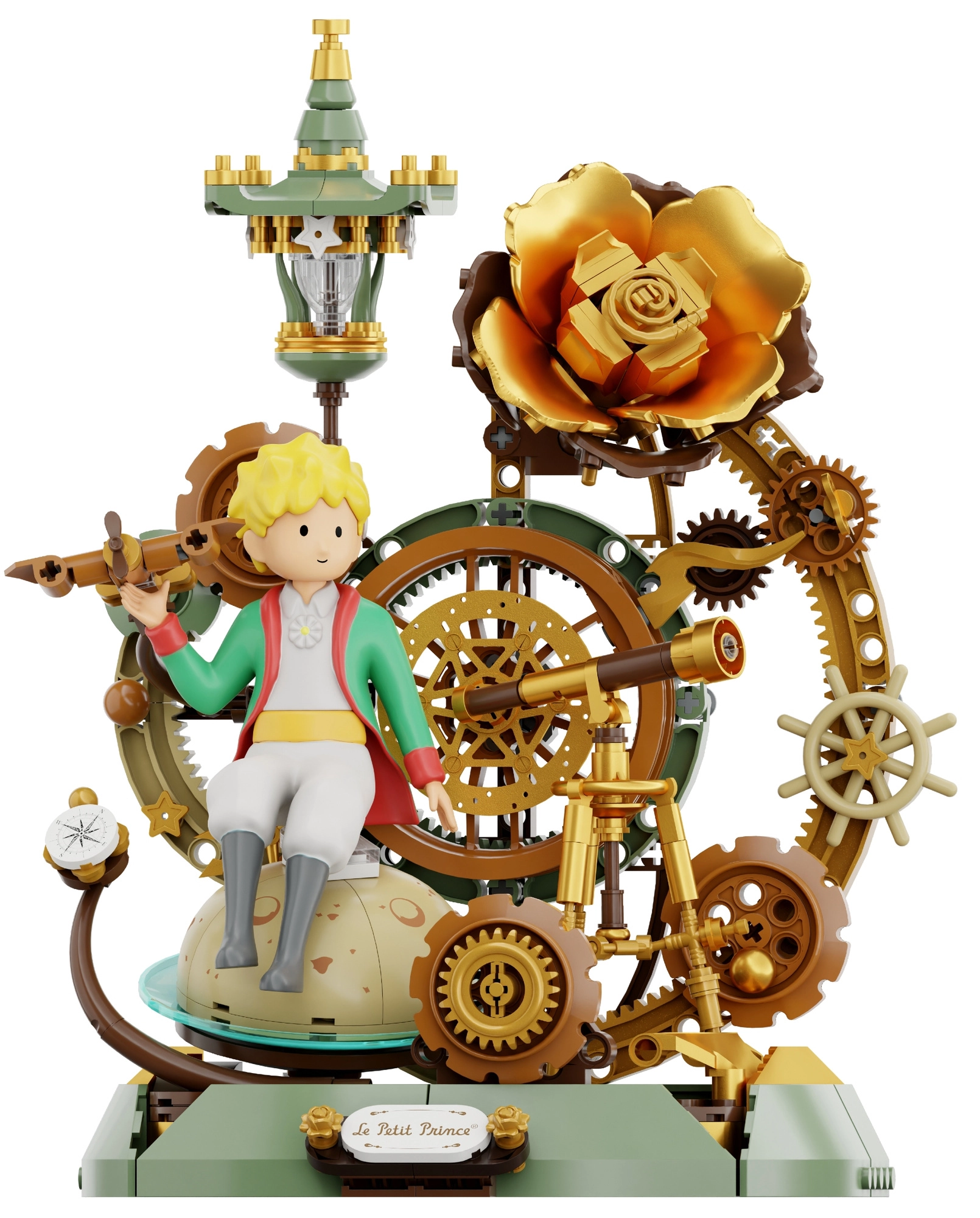Uronite u poetski svemir Malog princa i sastavite dojmljivu scenu s ikoničnim motivima – od zlatne ruže preko kompasa do suptilno stiliziranih zupčanika i lampiona. Model oduševljava detaljnom izradom i stabilnom konstrukcijom koja će nakon sastavljanja odlično izgledati na polici ili u vitrini.