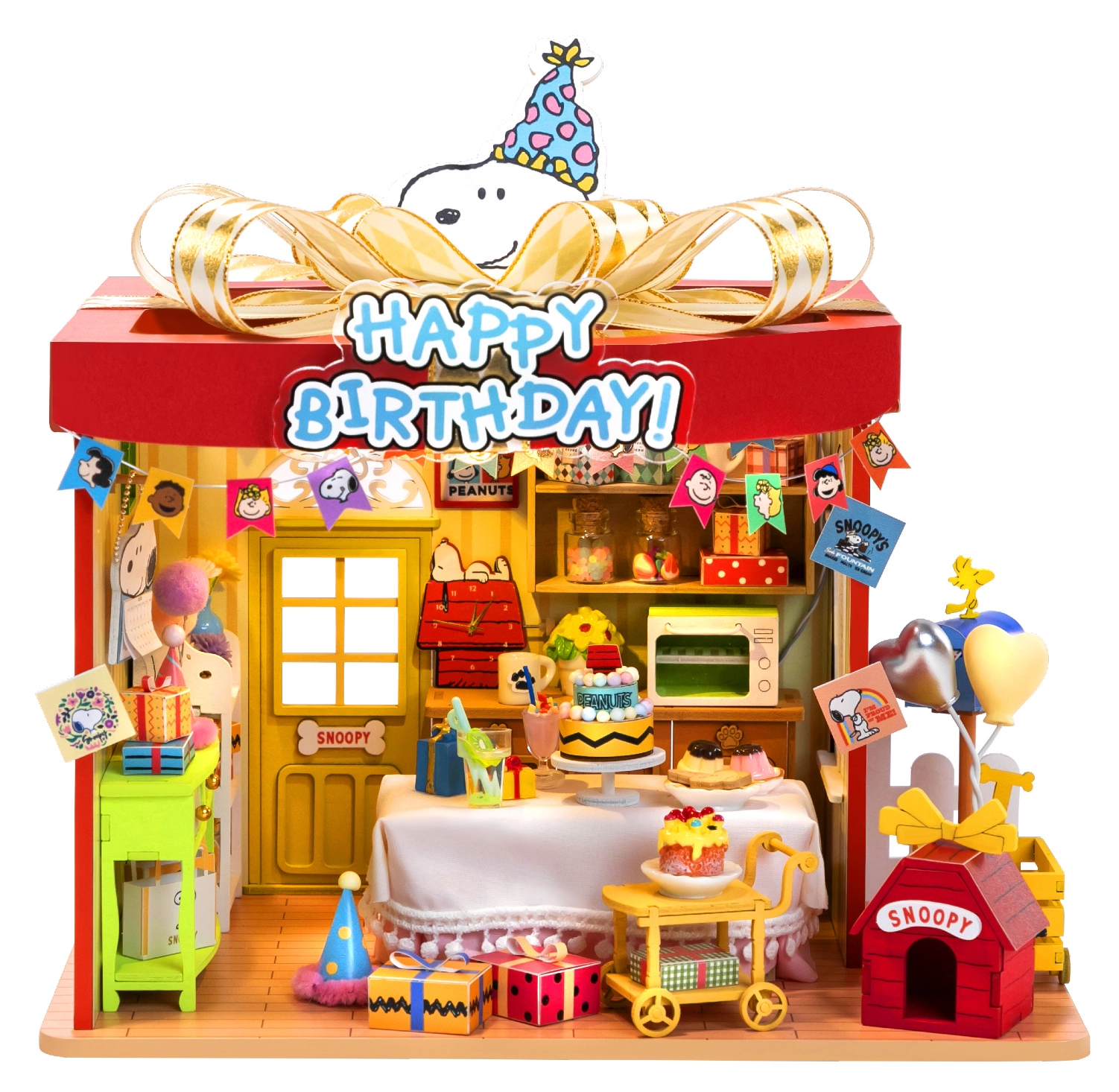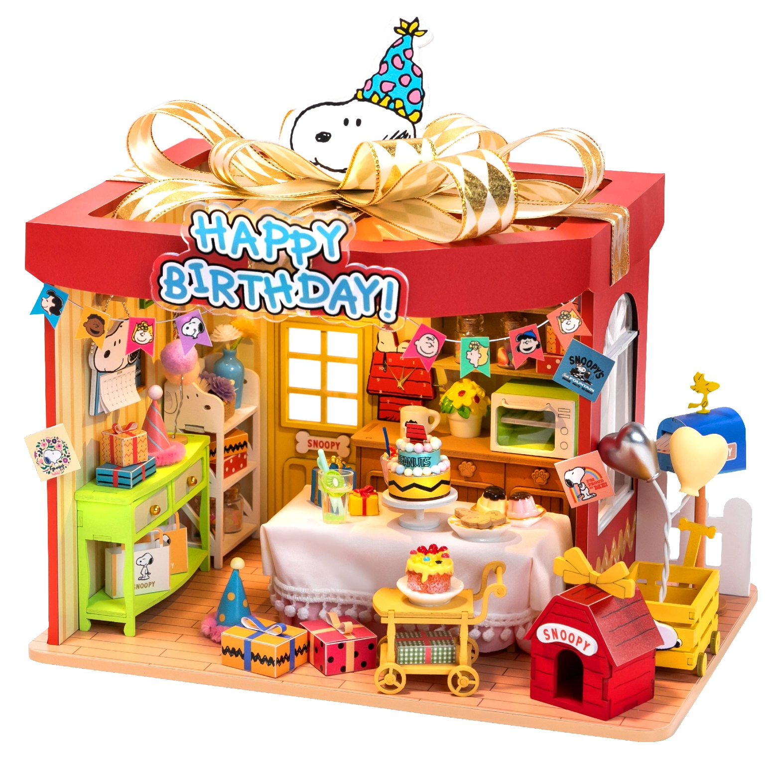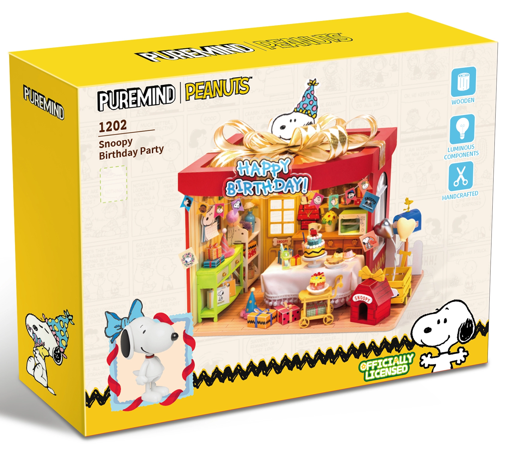 Otkrijte čarobnu scenu rođendanske proslave sa SNOOPYJEM u licenciranom drvenom 3D puzzle modelu brenda Puremind. Ovaj model spaja kreativno slaganje, detaljnu izradu i LED osvjetljenje, zbog čega je idealan i kao opuštajući hobi i kao stilizirana dekoracija za sobu ili policu.