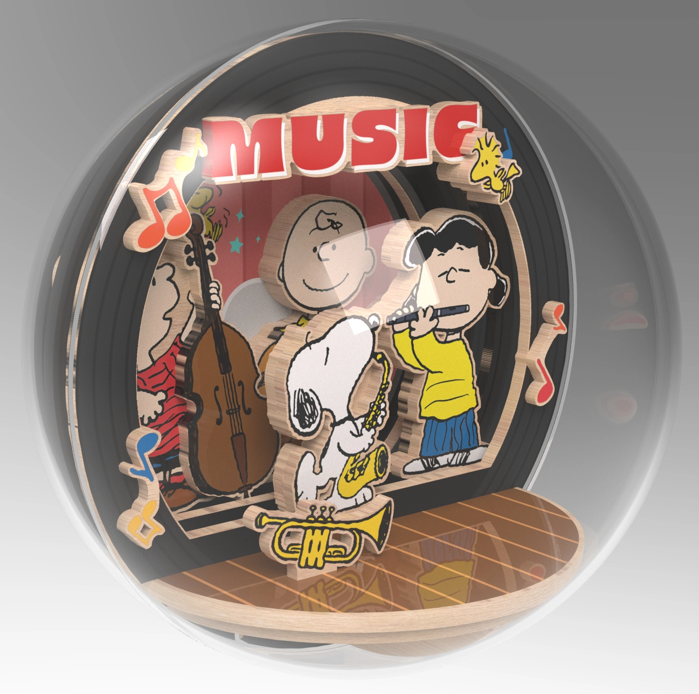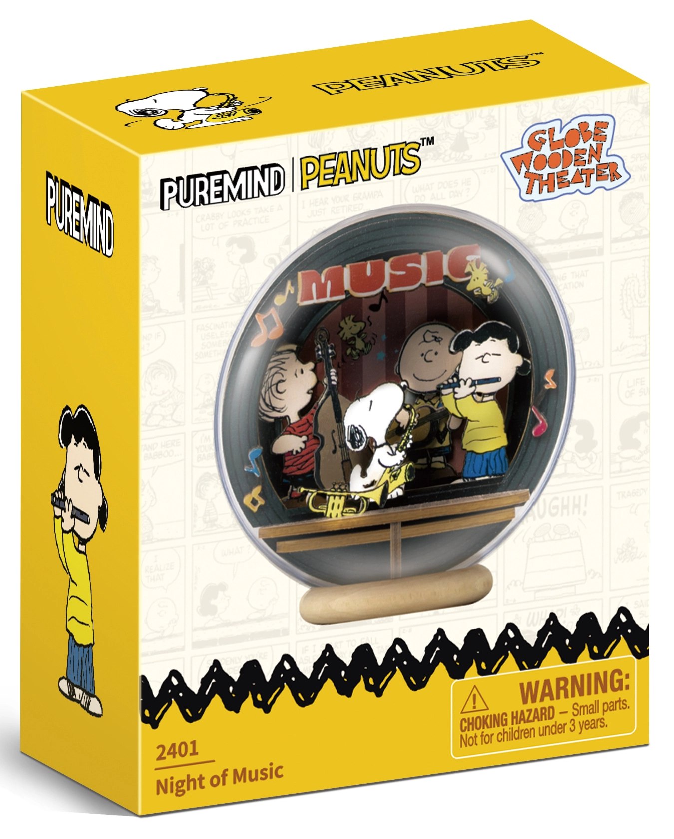 Ovaj licencirani DIY set prenosi atmosferu stripovskog svijeta PEANUTS u elegantan drveni model. Unutar akrilatne kupole nastaje mini scena Night of Music, gdje Snoopy i njegovi prijatelji sviraju večernji koncert. Zahvaljujući prozirnom pokrovu scena je vidljiva sa svih strana i stvara prostorni 3D efekt.