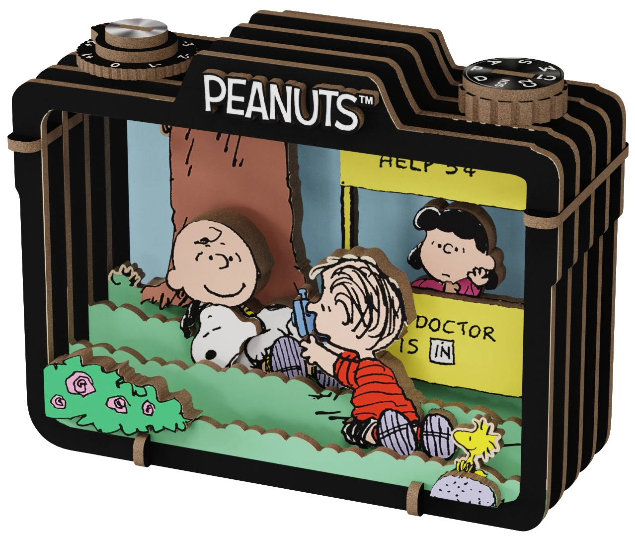 Složite čarobnu drvenu 3D scenografiju iz svijeta PEANUTS. Kreativni DIY model u obliku retro fotoaparata prikazuje Snoopyja i prijatelje u ljetnom trenutku. Precizno izrezani drveni slojevi, licencirani motiv i odličan izbor kako za slaganje, tako i za dekoraciju police ili radnog stola.