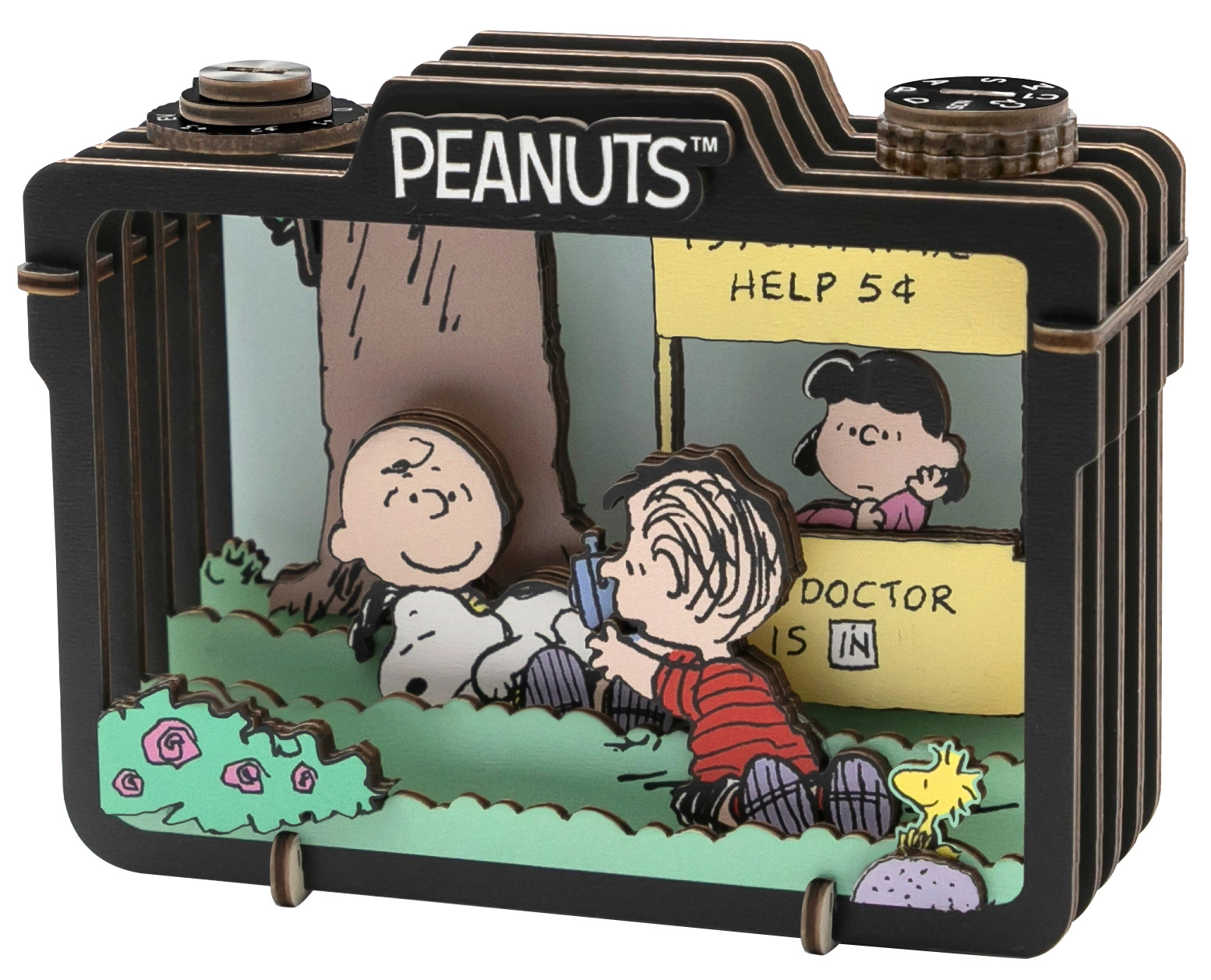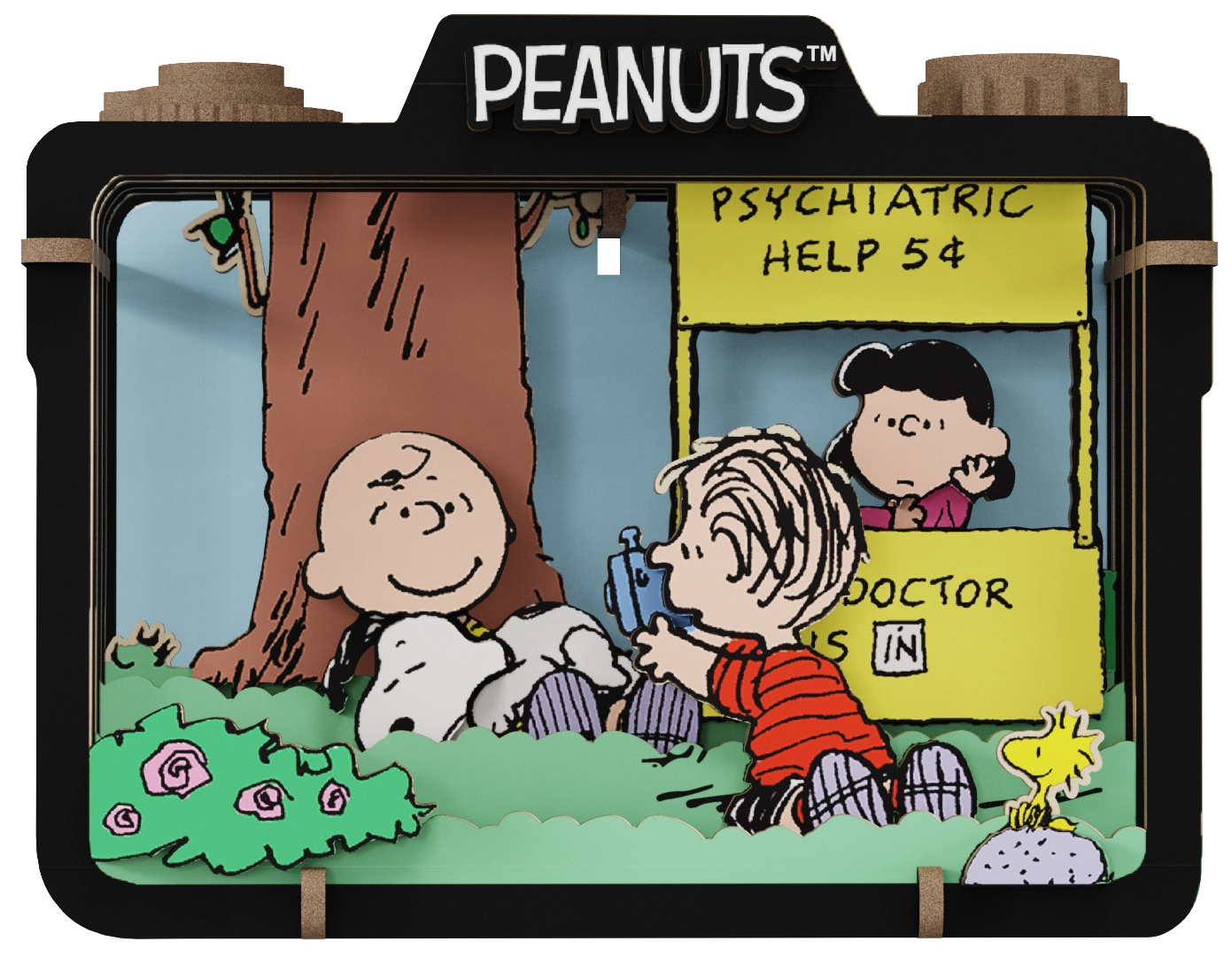 Dočarajte bezbrižnu atmosferu ljeta sa Snoopyjem i prijateljima u detaljno izrađenom drvenom diorami.