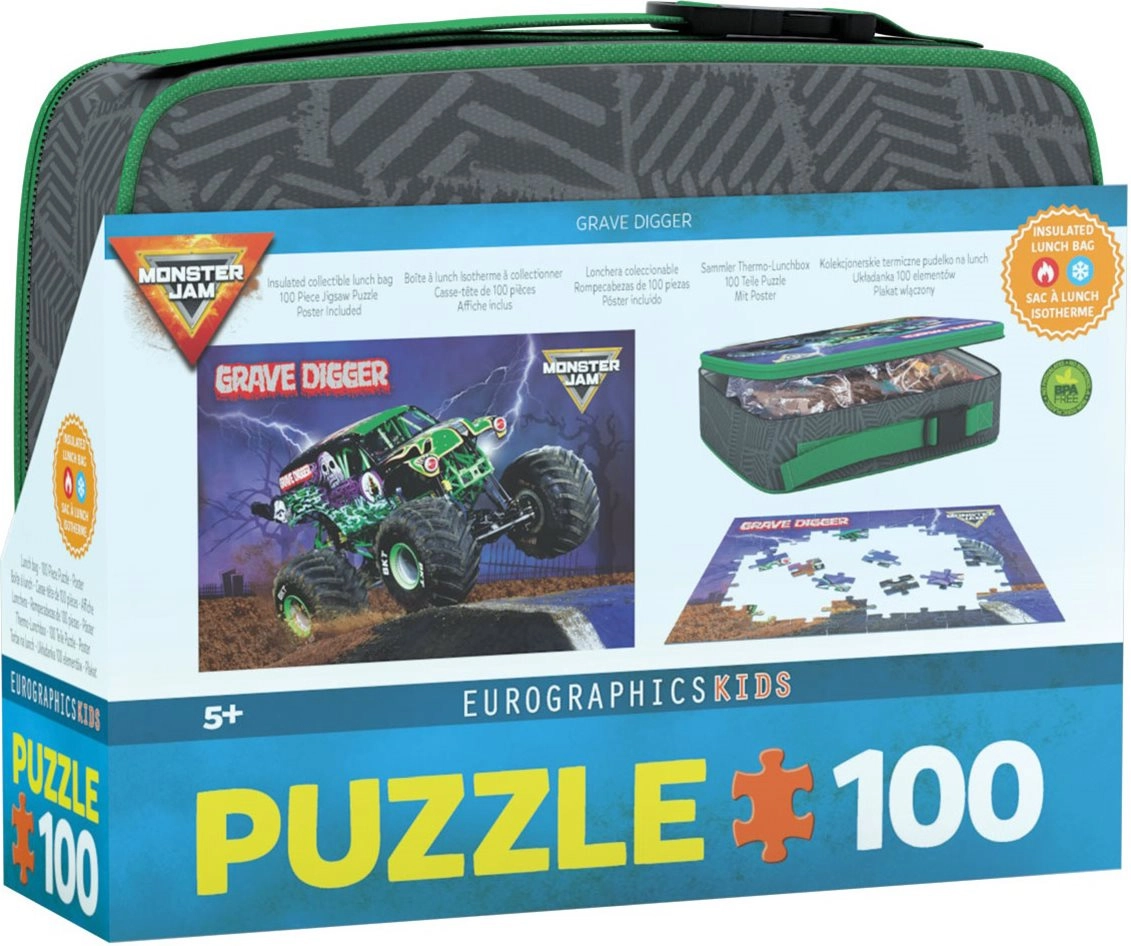 Uživajte u zabavi slaganja akcijskog motiva GRAVE DIGGER MONSTER JAM. Slagalica brenda EUROGRAPHICS dolazi u posebnom poklon-pakiranju – praktičnoj izotermičkoj kutiji za užinu s patentnim zatvaračem, koja je izvrsna za prenošenje i daljnju upotrebu.