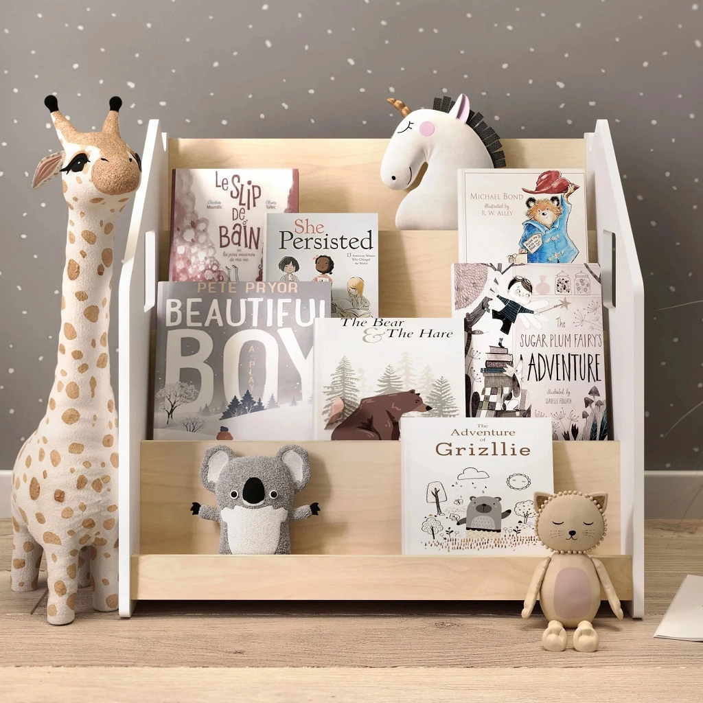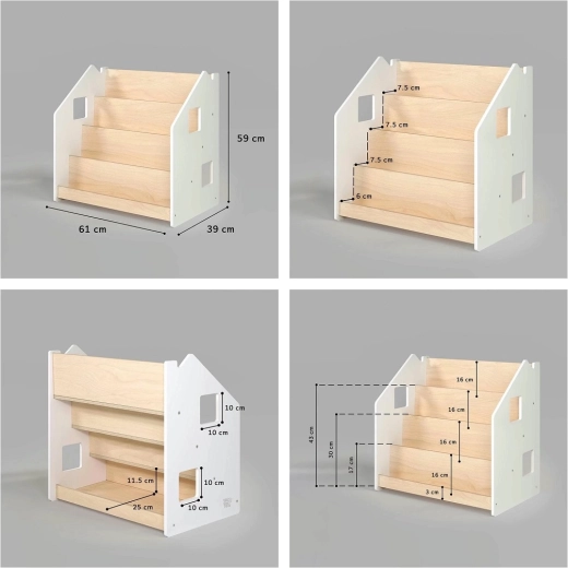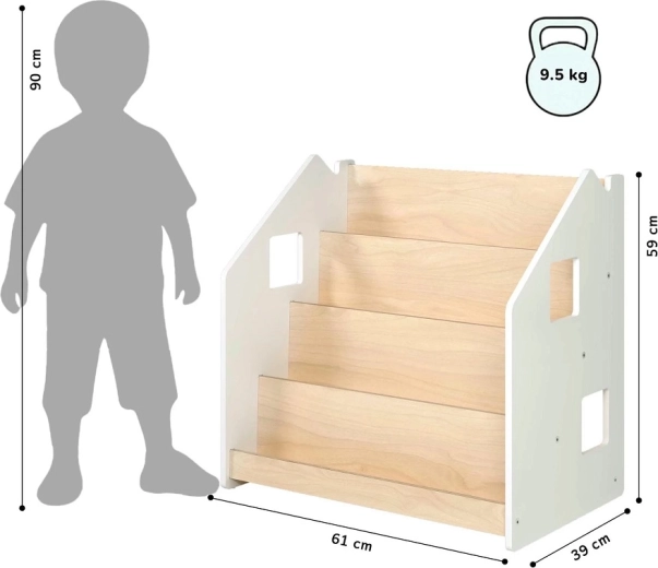 Praktični dječji stalak za knjige BusyKids potiče samostalnost i ljubav prema čitanju. Zahvaljujući prikazu knjiga koricama prema naprijed, djeca lako biraju svoju omiljenu. Nudi 4 prostrane police i stražnji spremnik za knjige ili igračke. Konstrukcija je robustna i sigurna, sa zaobljenim rubovima i lakiranjem na bazi vode. Minimalistički dizajn uklapa se u svaki interijer.