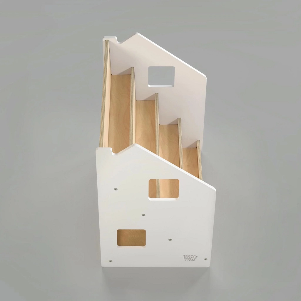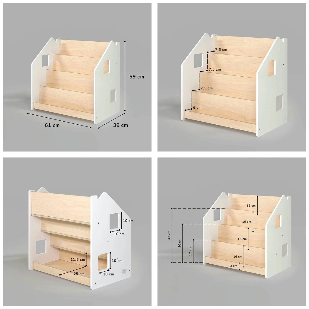 Stalak za knjige BusyKids dizajniran je tako da djeci omogući pregledno vidjeti korice knjiga te ih samostalno birati i odlagati. Zahvaljujući čistom, bezvremenskom izgledu odlično pristaje dječjoj sobi, igraonici i dnevnom boravku. Prednje police drže omiljene naslove pri ruci, dok stražnji spremnik prima dodatne knjige ili igračke.
