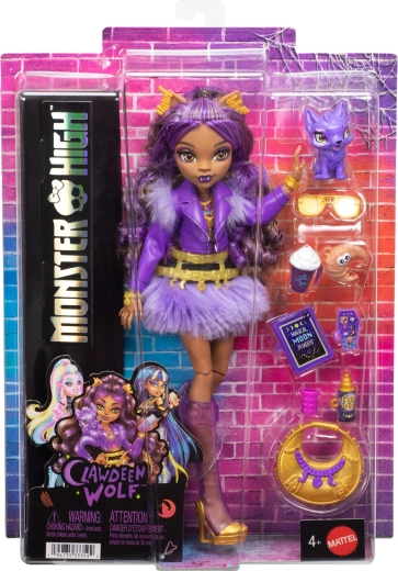 Otkrijte jedinstveni stil Clawdeen Wolf i uronite u svijet MONSTER HIGH. Lutka u ikoničnoj ljubičastoj odjeći sa zlatnim akcentima oduševljava razrađenim detaljima i mogućnošću kombiniranja dodataka za originalan izgled. U pakiranju je i preslatki ljubimac Crescent, s kojim će priče biti još življe.