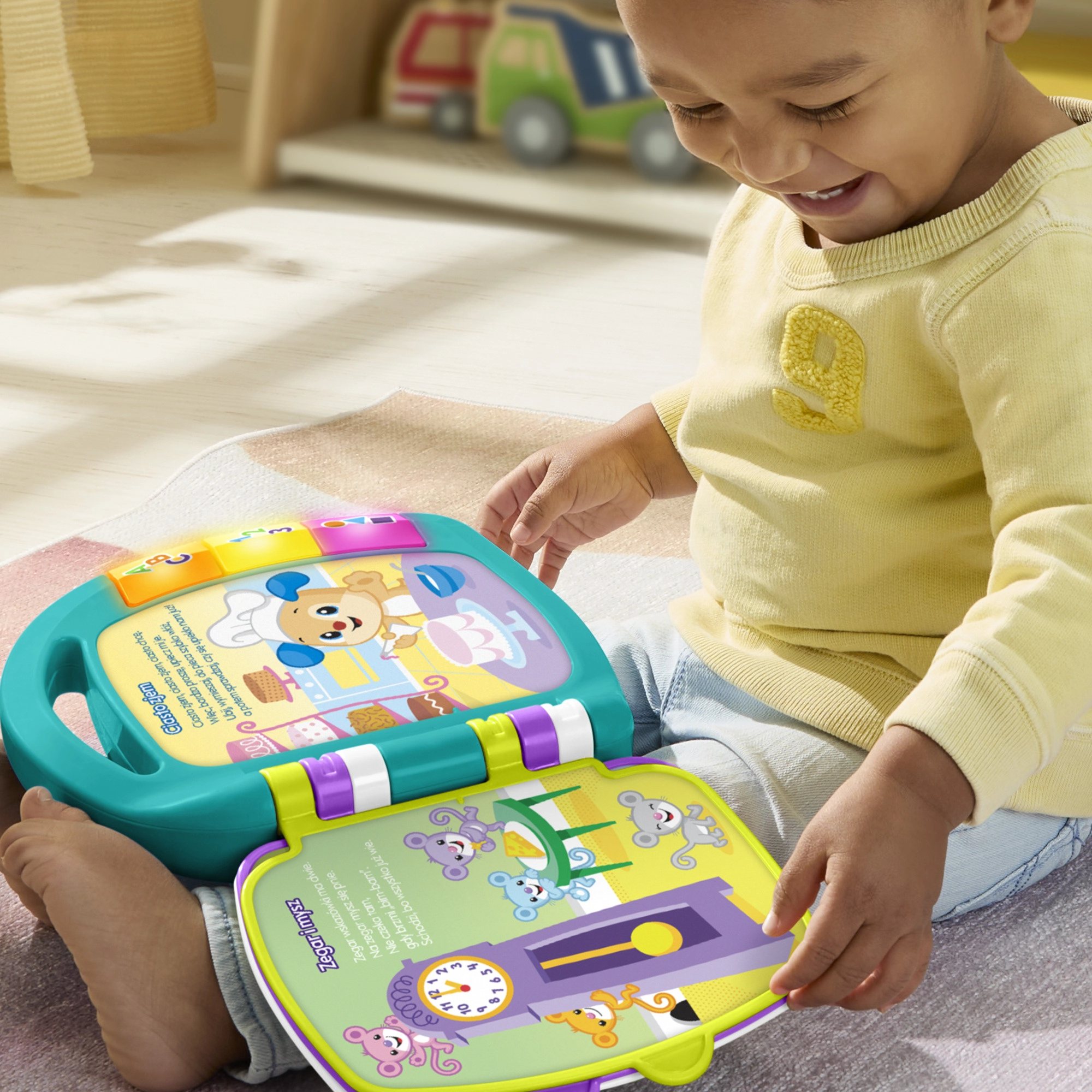 Robusna izrada marke FISHER-PRICE jamči kvalitetu i sigurnost. Proizvod je prilagođen malim dječjim rukama, potiče finu motoriku, slušno opažanje i jezični razvoj. Poljska jezična verzija izvrsna je za djecu koja odrastaju u poljsko-govorećem okruženju ili za prvi susret sa stranim jezikom.