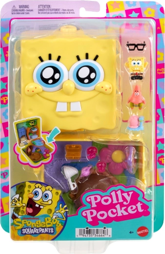 Ponesite zabavu u džepu! Ovaj kompaktni set Polly Pocket s motivom SPONGEBOB SQUAREPANTS otvara se u detaljno izrađenu mini scenu Bikini Bottoma – vidjet ćete SpužvaBobovu ananas kuću, Patrickovu kamenu kuću, Kuću Kalamarka i polje meduza. Zahvaljujući kućištu na zatvaranje i čvrstoj izradi, igra je lako prijenosna i idealna za putovanja.