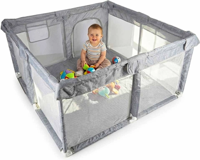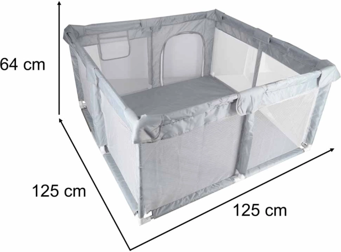 Praktična dječja ogradica dimenzija 120 × 120 cm stvara sigurno i prostrano mjesto za igru i odmor. Zahvaljujući mrežastim stijenkama bebu imate stalno na oku, ulaz s patentnim zatvaračem olakšava pristup, a jednostavna montaža bez vijaka štedi vrijeme. Stabilnost osiguravaju spojnice s vakuumskim čepovima, a mekani tekstilni rubovi povećavaju sigurnost i udobnost.