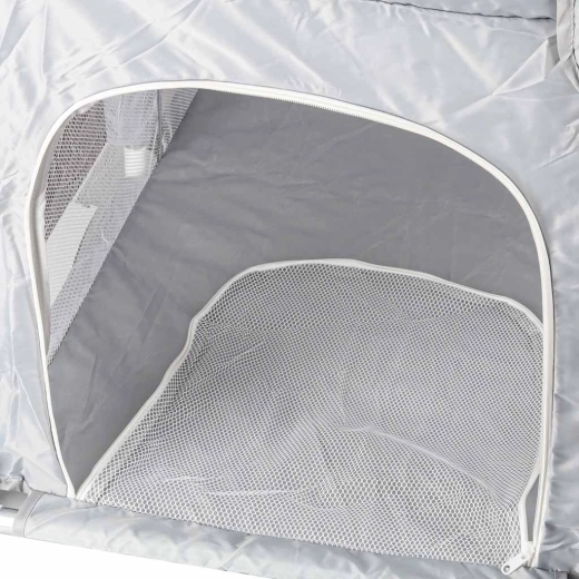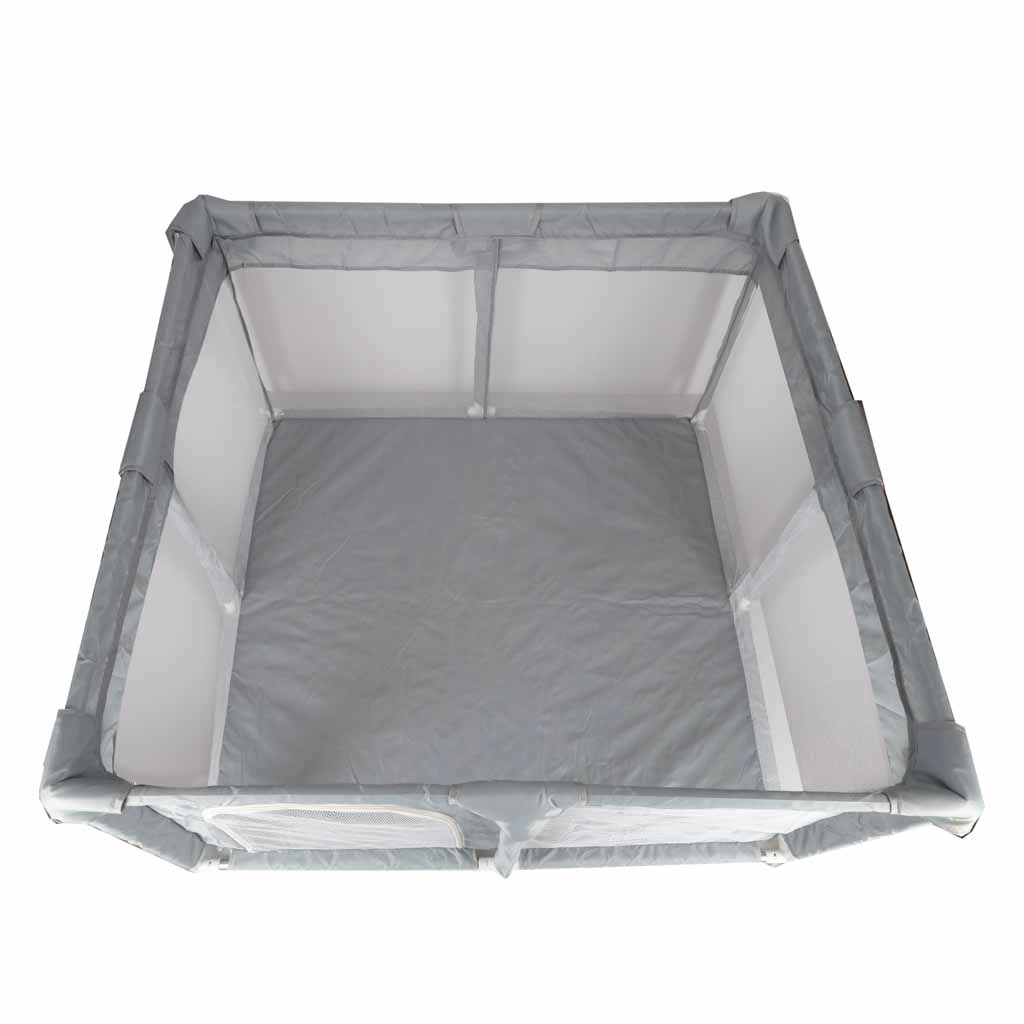 Ova sklopiva ogradica pruža djeci od 6 mjeseci siguran, prozračan i pregledan prostor za igru i mir. Mrežaste bočnice jamče odličnu cirkulaciju zraka i omogućuju roditeljima bolji nadzor, dok podstavljeni gornji rubovi doprinose udobnosti i sigurnosti.