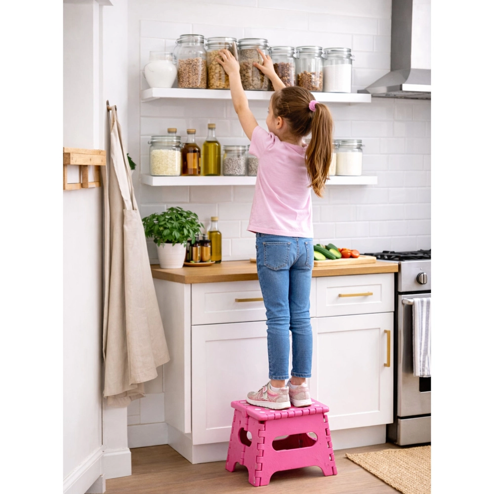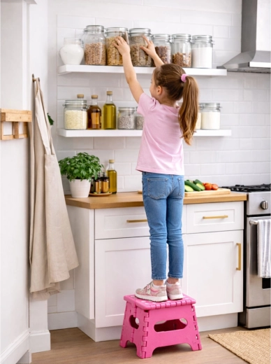 Idealna za djecu kod umivaonika, za lakše dosezanje viših polica u kuhinji ili ormaru, kao pomoćno sjedalo ili praktičan dodatak za kampiranje i putovanja. Minimalistički dizajn i kompaktne dimenzije uklapaju se u svaki interijer.