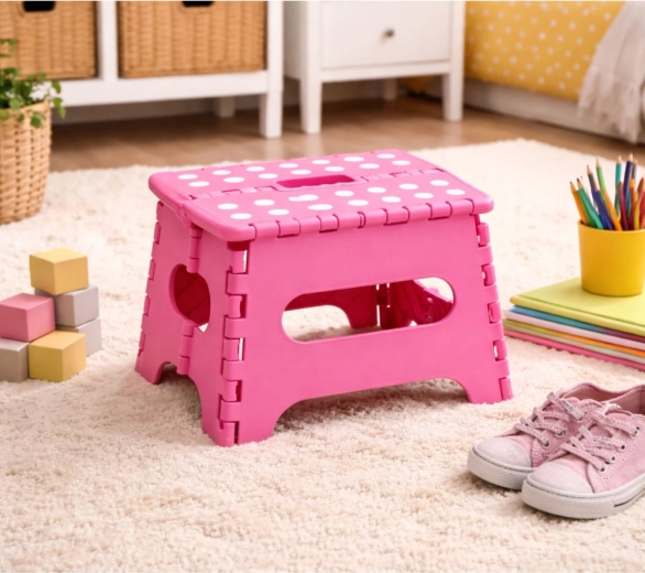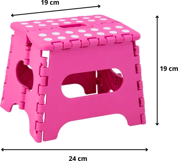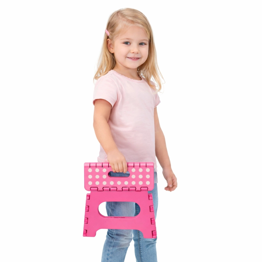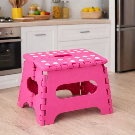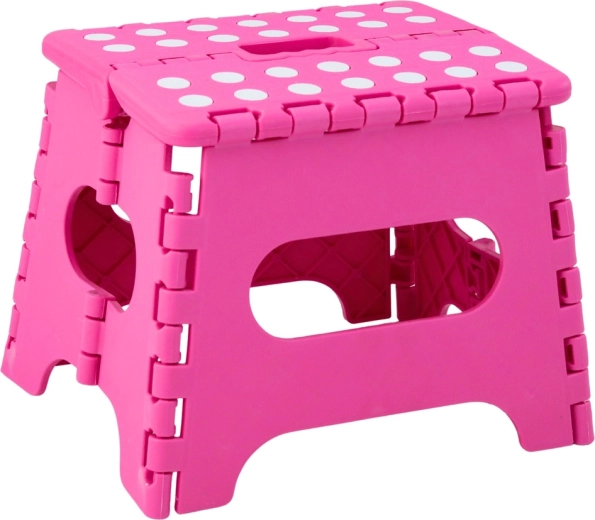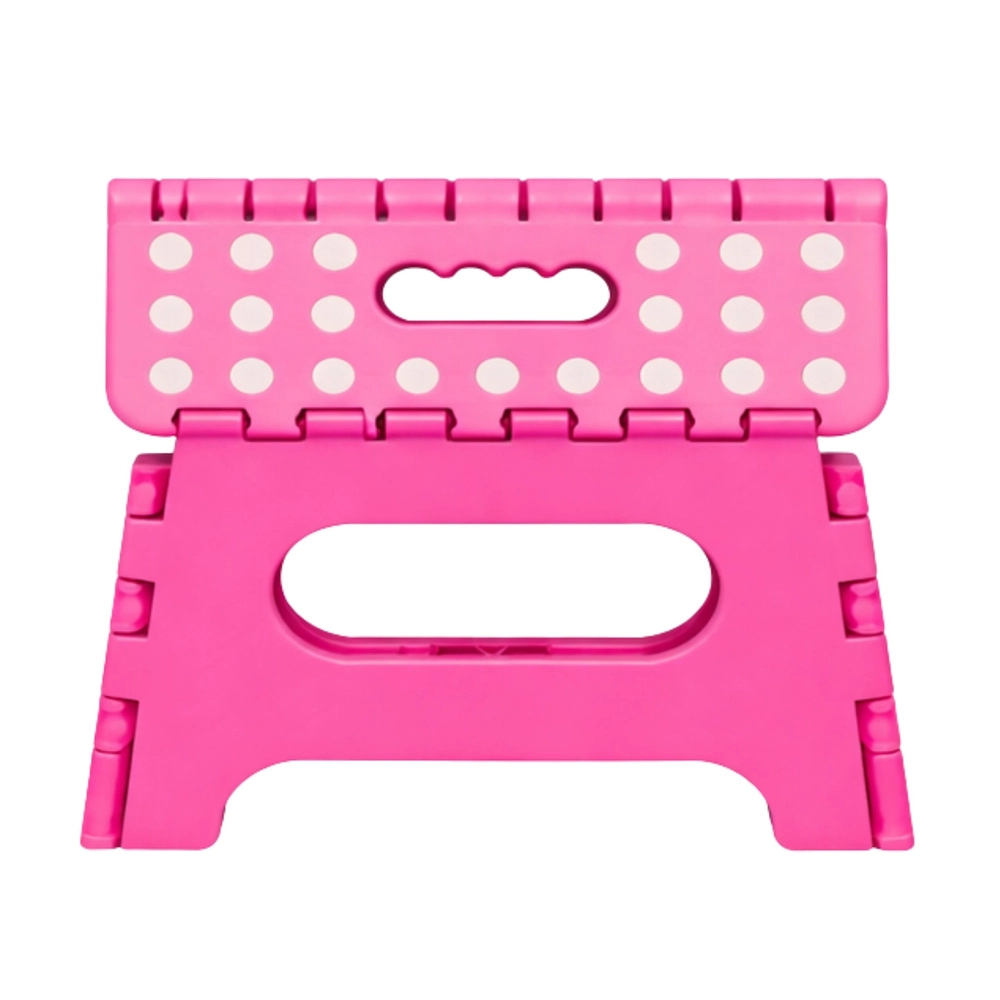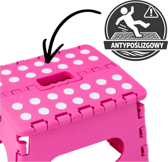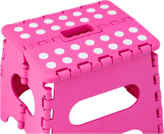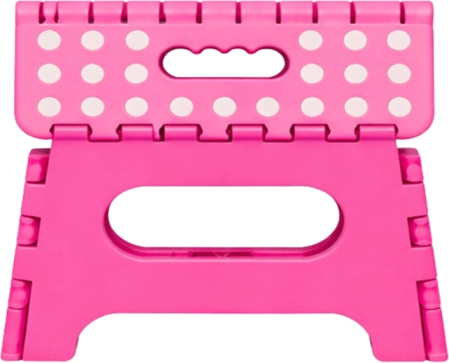 Ružičasta sklopiva stepenica izrađena je od izdržljive plastike koja osigurava čvrstoću i dug vijek trajanja. Protuklizna gornja površina s točkicama povećava sigurnost pri uporabi, i to čak i u vlažnom okruženju. Integrirana ručka omogućuje brzo prenošenje i lako sklapanje u ravan oblik za štednju prostora pri spremanju.