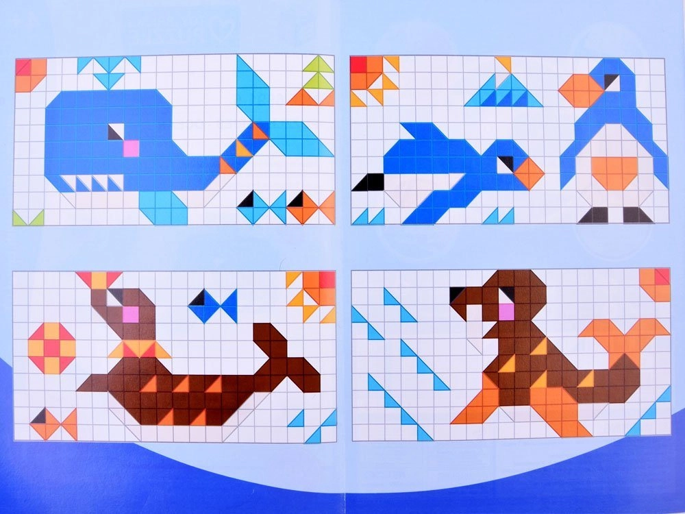 Djeca uvježbavaju prepoznavanje i kombiniranje boja, prostornu maštu i manualne vještine pri slaganju detaljnih mozaika.