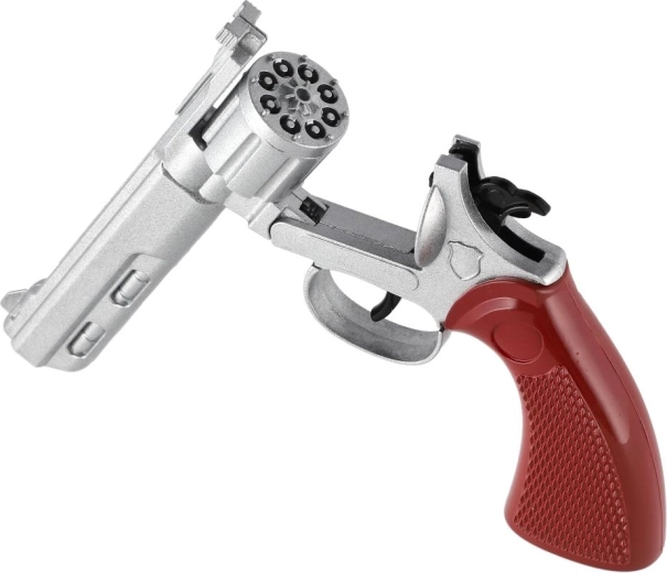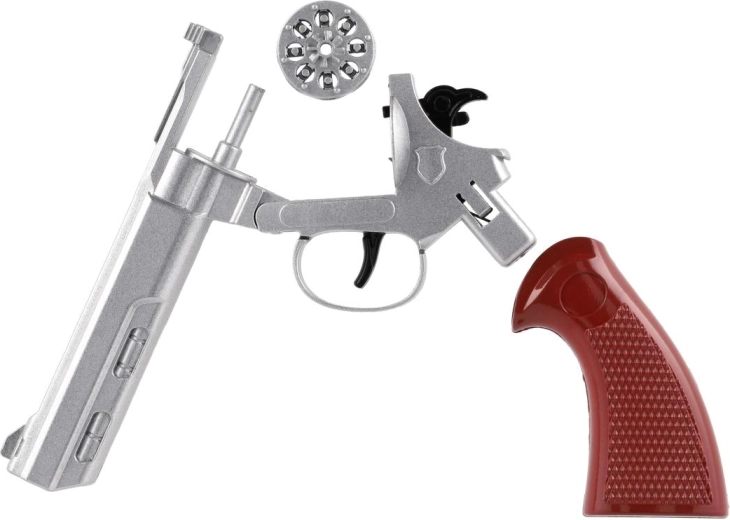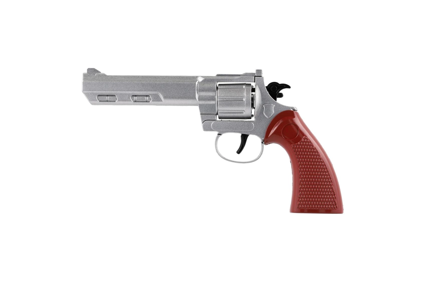 Ovaj stilski revolver duljine 22 cm nudi autentičan izgled i pouzdanu funkciju za dječju igru. Metalno tijelo djeluje realistično, dok zvučni efekt pri upotrebi 8-metnih kapisli pojačava doživljaj avanture. Zahvaljujući ergonomskoj dršci pištolj dobro leži u ruci i tijekom duljeg igranja.