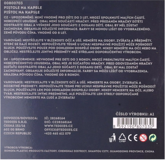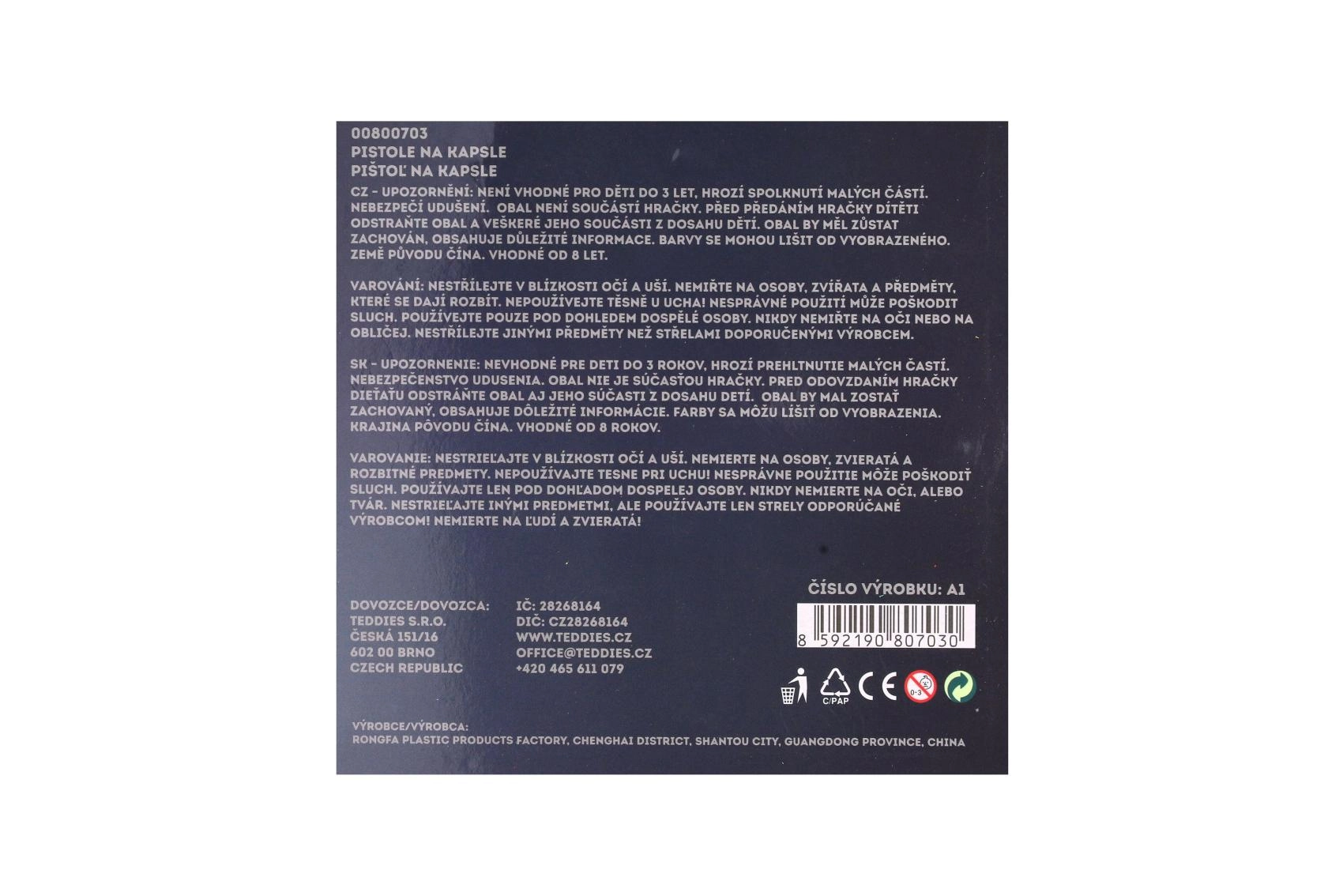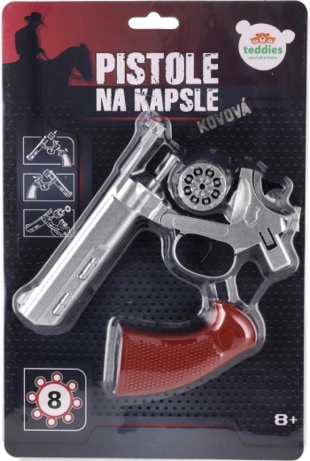 Uživajte u akcijskoj zabavi s ovim metalnim kapislaškim pištoljem za 8-metne trake. Realistična izrada, izdržljiva konstrukcija i ergonomska drška osiguravaju ugodno držanje i vjeran doživljaj igre. Idealan kao dodatak kostimu i za tematske igre. Igračka ne ispaljuje projektile.