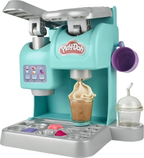 Set je osmišljen kao mala kavana koja potiče kreativnost, finu motoriku i igru uloga. Uz pomoć interaktivnog „aparata za kavu“ djeca pune čaše PLAY-DOH masom, okrenu ih i pomaknu do stanice za „topping“, gdje stvaraju prozračni „šlag“ i druge ukrase. Zahvaljujući duginim, sjajnim i dvobojnim posudicama plastelina, njihove kreacije uvijek će biti originalne.