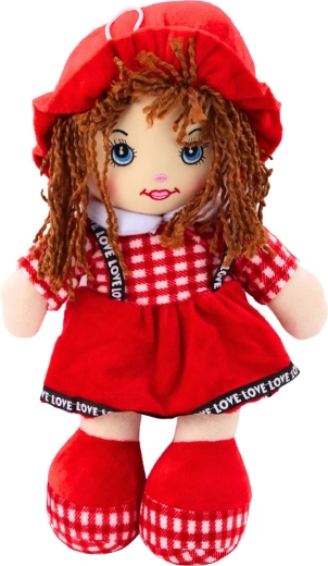 Ova nježna šivana lutka u crvenoj haljini s finim kariranim uzorkom razveselit će svako dijete. Zahvaljujući mekom punjenju i tekstilnom tijelu sigurna je već od najranije dobi. Vezeni detalji lica, pletena kosica te usklađeni šeširić i cipelice daju lutki poseban šarm i prijateljski izraz.