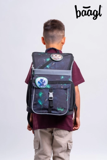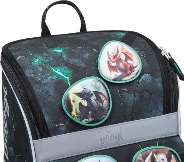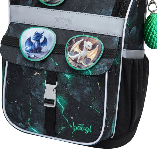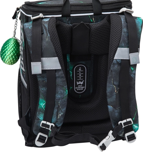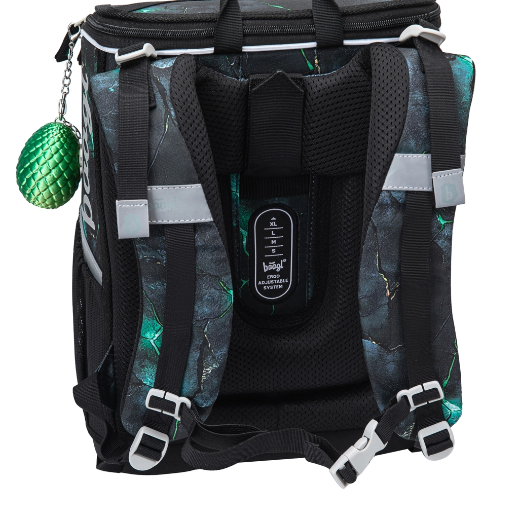 Aktovka BAAGL Zippy zmajevi kombinira promišljenu ergonomiju i izdržljivost s atraktivnim dizajnom. Zahvaljujući podesivom leđnom sustavu ERGO ADJUSTABLE lako je namještate u tri veličine, tako da može doslovno rasti s djetetom. Potpuno podesive naramenice i prozračna podstava osiguravaju udobno pristajanje na leđima i pravilnu raspodjelu težine.
