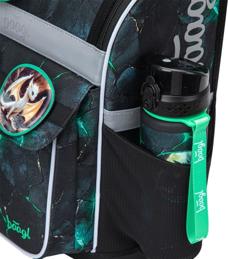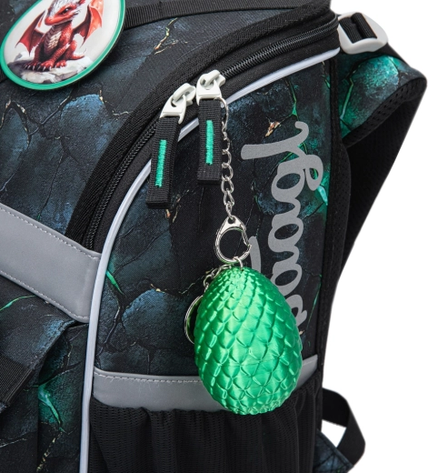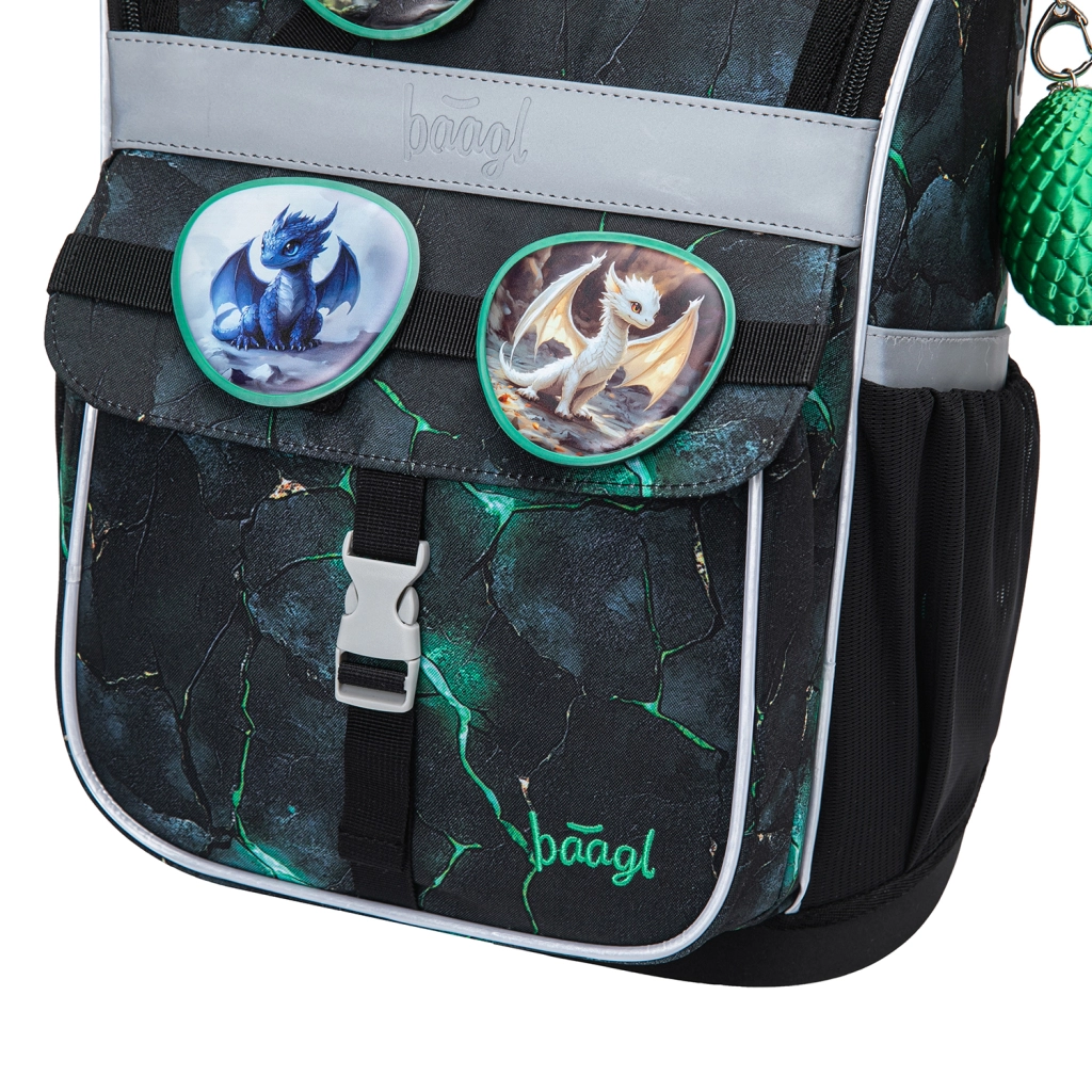 Reflektirajući elementi za bolju vidljivost, vodonepropustan materijal i pouzdani YKK patentni zatvarači. Zamjenjive značke i motiv zmajeva daju aktovci prepoznatljiv izgled.