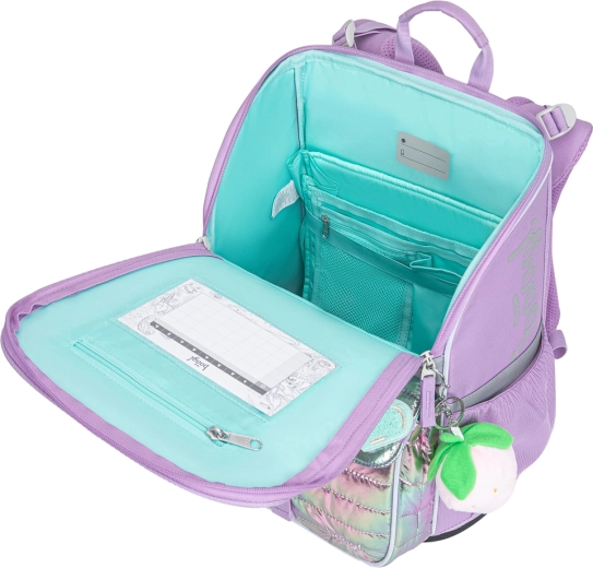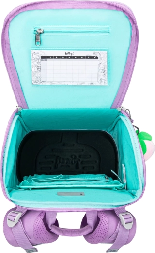 Torba BAAGL Zippy Lavender kombinira malu težinu s ergonomijom i dugim vijekom trajanja. Klizni sustav leđa ERGO ADJUSTABLE omogućuje podešavanje u tri veličine, tako da torba doslovno raste s djetetom. Potpuno podesive naramenice, prsna kopča i prozračno podstavljanje osiguravaju zdravo i udobno nošenje tijekom cijelog školskog dana.