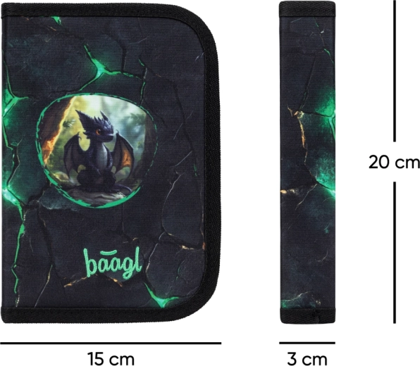 Školski set BAAGL Zippy Zmajevi dizajniran je za udobnost, sigurnost i dugotrajnost pri svakodnevnom nošenju. Ergonomska aktovka s kliznim sustavom ERGO ADJUSTABLE prilagođava se građi djeteta, a zahvaljujući reflektirajućim elementima povećava vidljivost. Praktični detalji, poput preklopnog otvaranja, unutarnje gumice za fiksaciju sadržaja te čvrstih bočnih džepova za bocu, osiguravaju maksimalan red i jednostavan pristup.