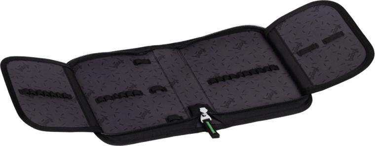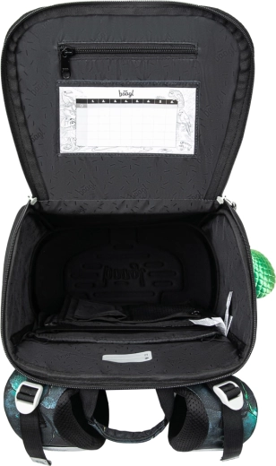 Praktična podjela s preklopnim otvaranjem olakšava pristup priboru izravno iz klupe. Unutra se nalazi gumica za fiksiranje sadržaja blizu težišta, bočni džepovi od čvrstog materijala za bocu i pouzdani zatvarači YKK za dugi vijek trajanja. Jedinstveni sustav izmjenjivih bedževa omogućuje djeci da mijenjaju izgled prema raspoloženju.