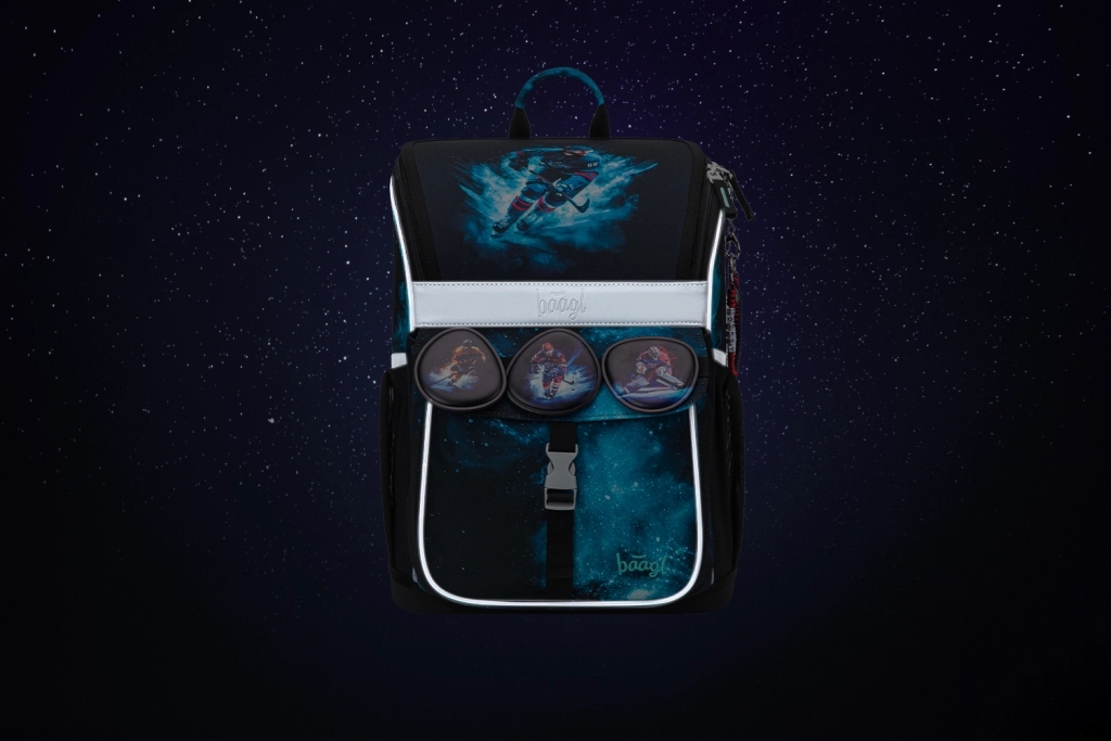 Školski set BAAGL Zippy Hokej nudi sve što je djetetu potrebno za školu – laganu i stabilnu aktovku s ojačanim tijelom, klasičnu pernicu s dvjema preklopnim krilcima, vrećicu s džepom na patent i novčanik za oko vrata. Dizajn s hokejaškim motivom i zamjenjivim značkama dijete lako prilagođava svom raspoloženju. Zahvaljujući reflektirajućim elementima školarac će biti dobro vidljiv i u sumrak.