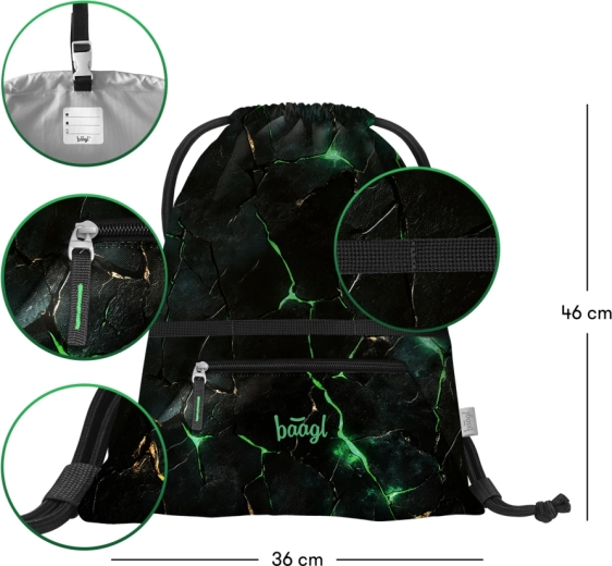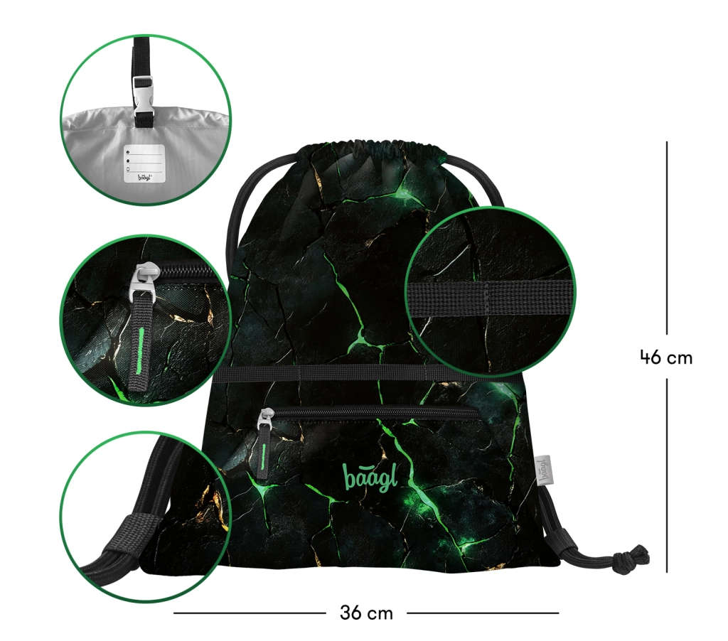 Praktična školska vrećica s džepom na patentni zatvarač marke BAAGL idealna je za papuče, obuću i sportsku opremu. Izrađena je od čvrstog i perivog materijala, ima izdržljive vezice za udobno nošenje i petlju s kopčom za lako pričvršćivanje na ruksak ili aktovku.