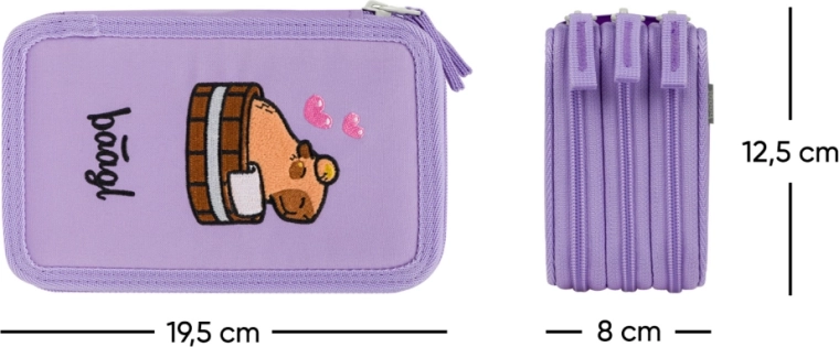 Držite sve pisaće potrepštine pregledno na jednom mjestu. Trokatna školska pernica Baagl s motivom kapibare idealna je za učenike kojima treba više prostora i koji cijene kvalitetnu izradu. Zahvaljujući promišljenom rasporedu, u nju se udobno smještaju bojice, flomasteri, olovke i druge potrepštine.