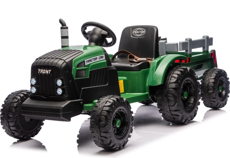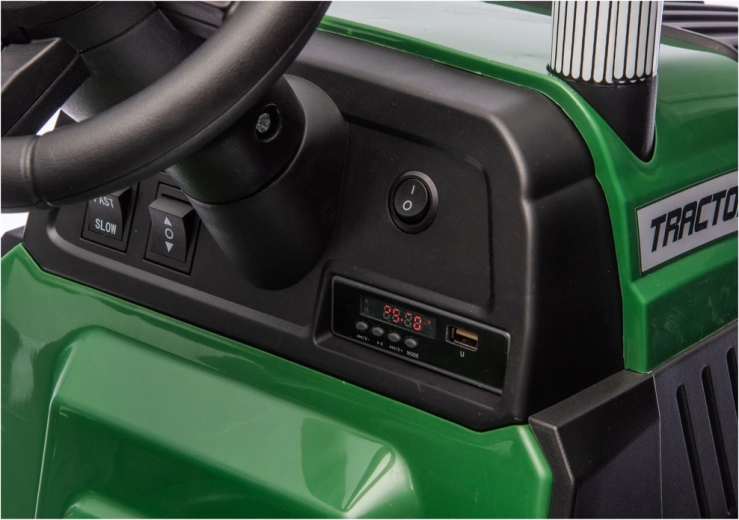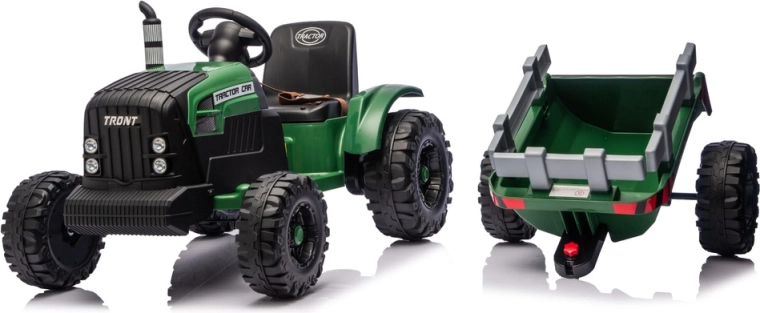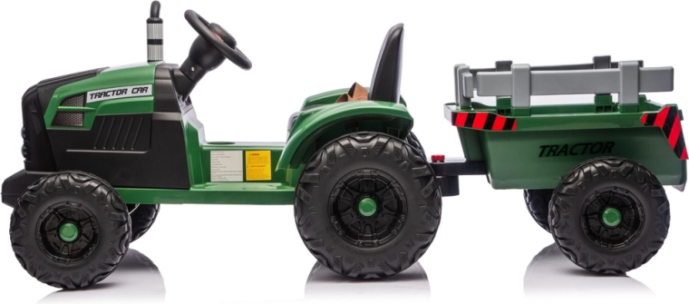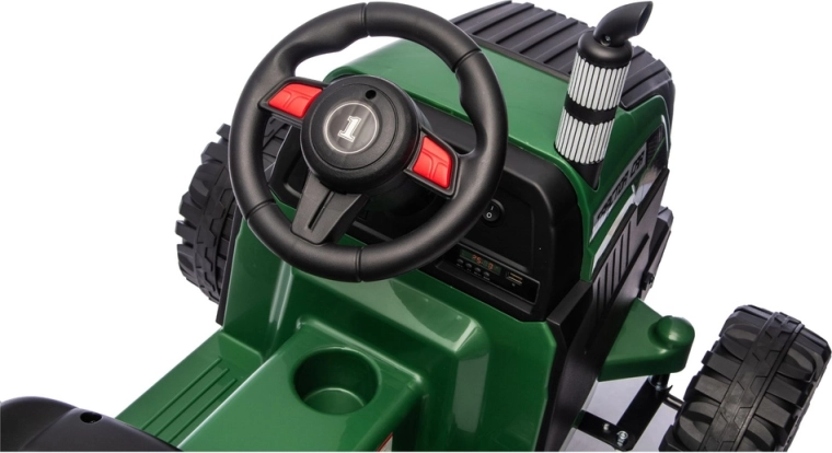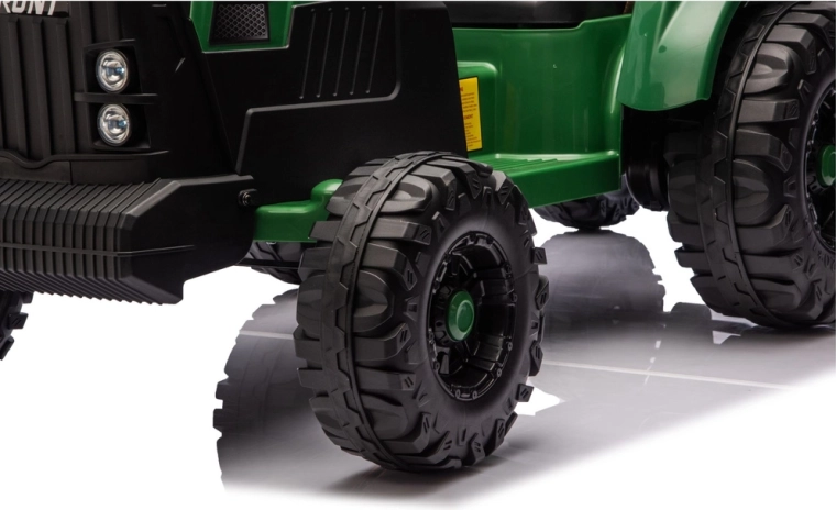 Dječji električni traktor s prikolicom u tamnozelenoj boji donosi realističnu vožnju i puno zabave u vrtu i na dvorištu. Zahvaljujući snažnom 24V napajanju, robustnim kotačima i odvojivoj prikolici djeca mogu sigurno prevoziti igračke i uživati u pustolovnoj igri farmera.