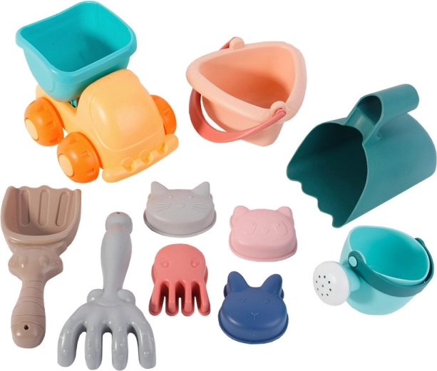 Set za pijesak WOOPIE u nježnim pastelnim bojama savršen je izbor za male graditelje dvoraca i ljubitelje stvaranja. U njemu ćete naći sve potrebno: kanticu s ručkom, zalijevaču za zalijevanje, lopaticu, grabljice, žlicu, nekoliko kalupa i simpatičan autić za prijevoz pijeska. Djeca vježbaju finu motoriku, koordinaciju oko–ruka i kreativnost.