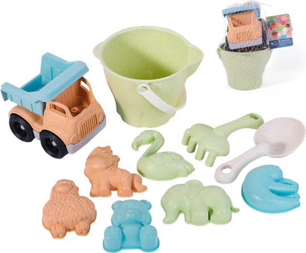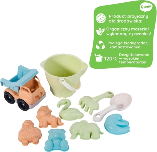 Ekološki set za pijesak WOOPIE GREEN donosi djeci mnoštvo mogućnosti za stvaranje i otkrivanje vanjskog svijeta. Pastelni dizajn ugodan je oku, dok se izdržljivi materijali lako čiste i podnose svakodnevnu igru. U kompletu je i robustan kiperski kamion za prijevoz pijeska i blaga.
