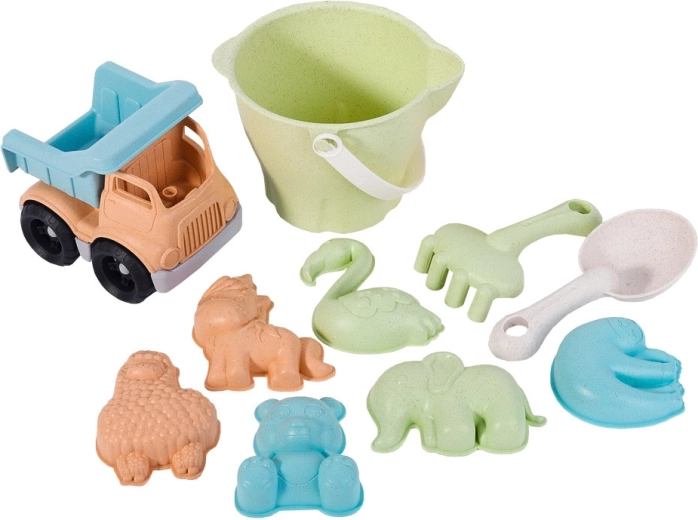 Otkrijte razigranu i istovremeno održivu zabavu s dječjim setom za pijesak WOOPIE GREEN. Ovaj set od 11 dijelova u modernim pastelnim bojama sadrži kanticu, zalijevač, kiperski kamion, lopatice i životinjske kalupe za gradnju i stvaranje. Izrađen od organskog, biorazgradivog materijala na bazi pšenične slame i pogodan za kompostiranje. Zahvaljujući zaobljenim rubovima, udobnim rukohvatima i dezinfekciji na 120 °C, set je siguran za djecu i idealan za pješčanik, plažu i vrt.