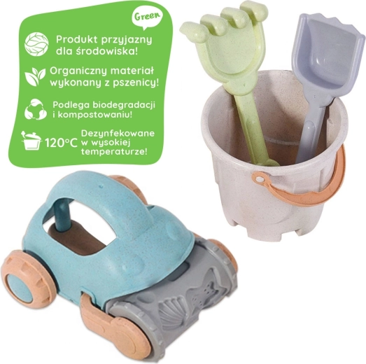 Ovaj ekološki set za pijesak marke WOOPIE izrađen je od organskog materijala na bazi pšeničnih vlakana, koji je biorazgradiv i kompostabilan. Zahvaljujući izdržljivoj izradi, zaobljenim oblicima i laganoj konstrukciji, odličan je za male dječje ruke i sigurnu igru na otvorenom.