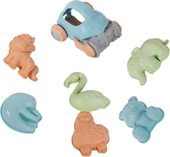 U pakiranju se nalazi sve za kreativnu gradnju i oblikovanje: kanta s čvrstom ručkom, 6 kalupa životinja, lopatica, grablje te zabavni autić s valjkom za otiske. Podržava finu motoriku, oko–ruka koordinaciju, prostorno razmišljanje i društvene vještine tijekom igre s prijateljima.