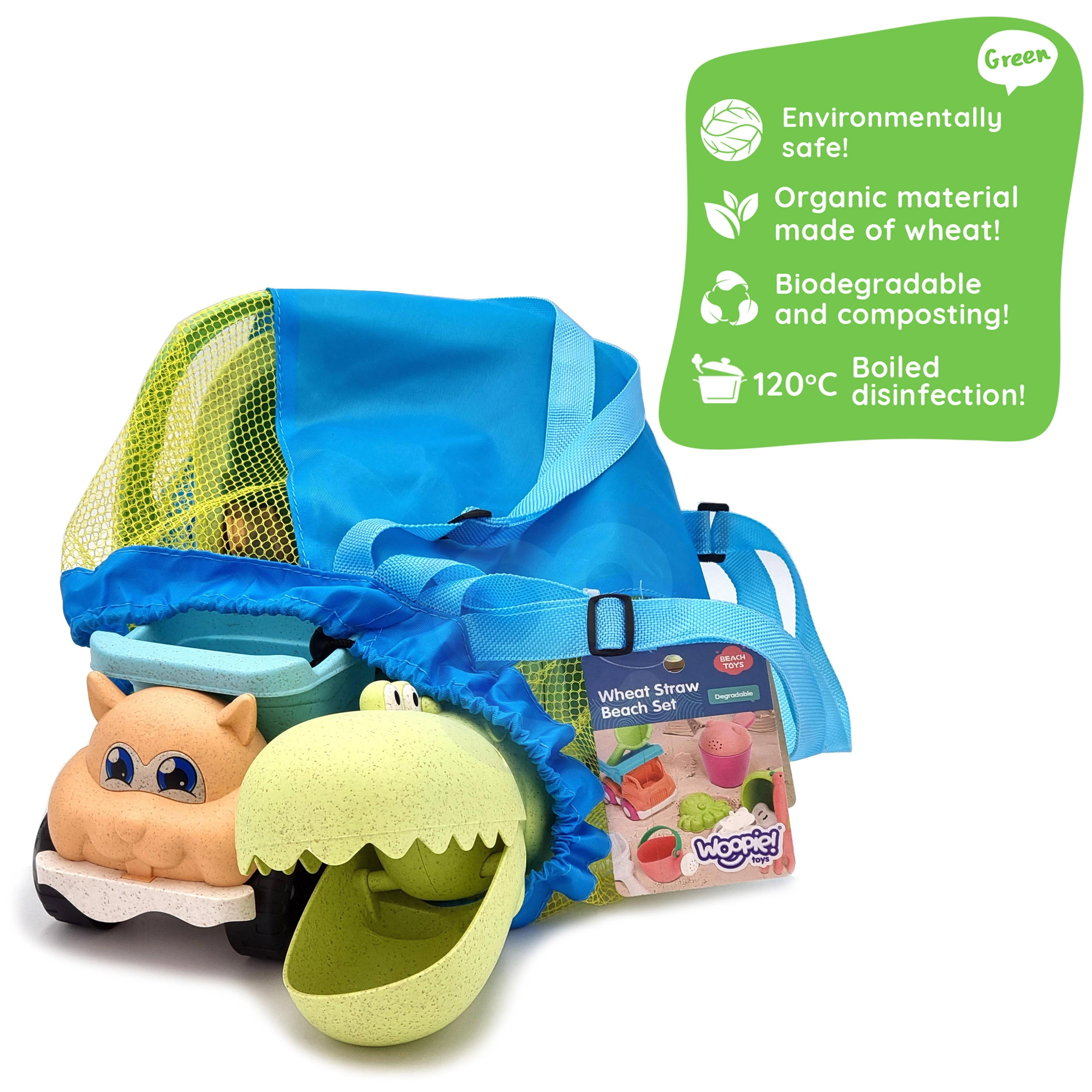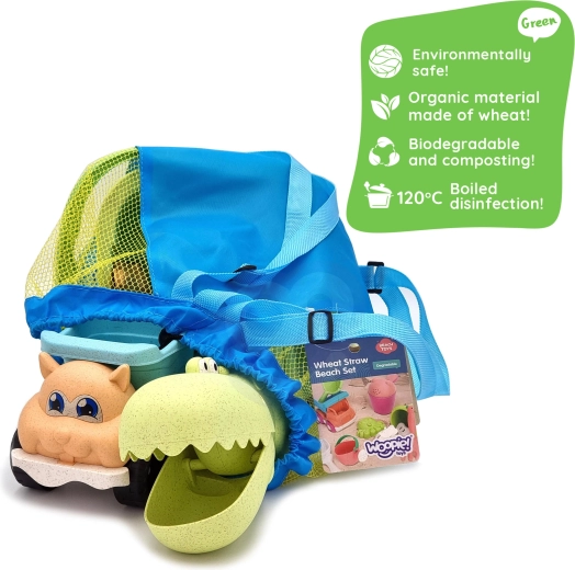 Otkrijte održivu zabavu sa setom WOOPIE GREEN u modernim pastelnim bojama. Organski materijal na bazi pšeničnih vlakana je biorazgradiv i kompostabilan, pa djeca uživaju u stvaranju, a vi imate dobar osjećaj zbog brige za prirodu. Prozračan mrežasti ruksak olakšava prenošenje i sušenje igračaka nakon igre uz vodu.