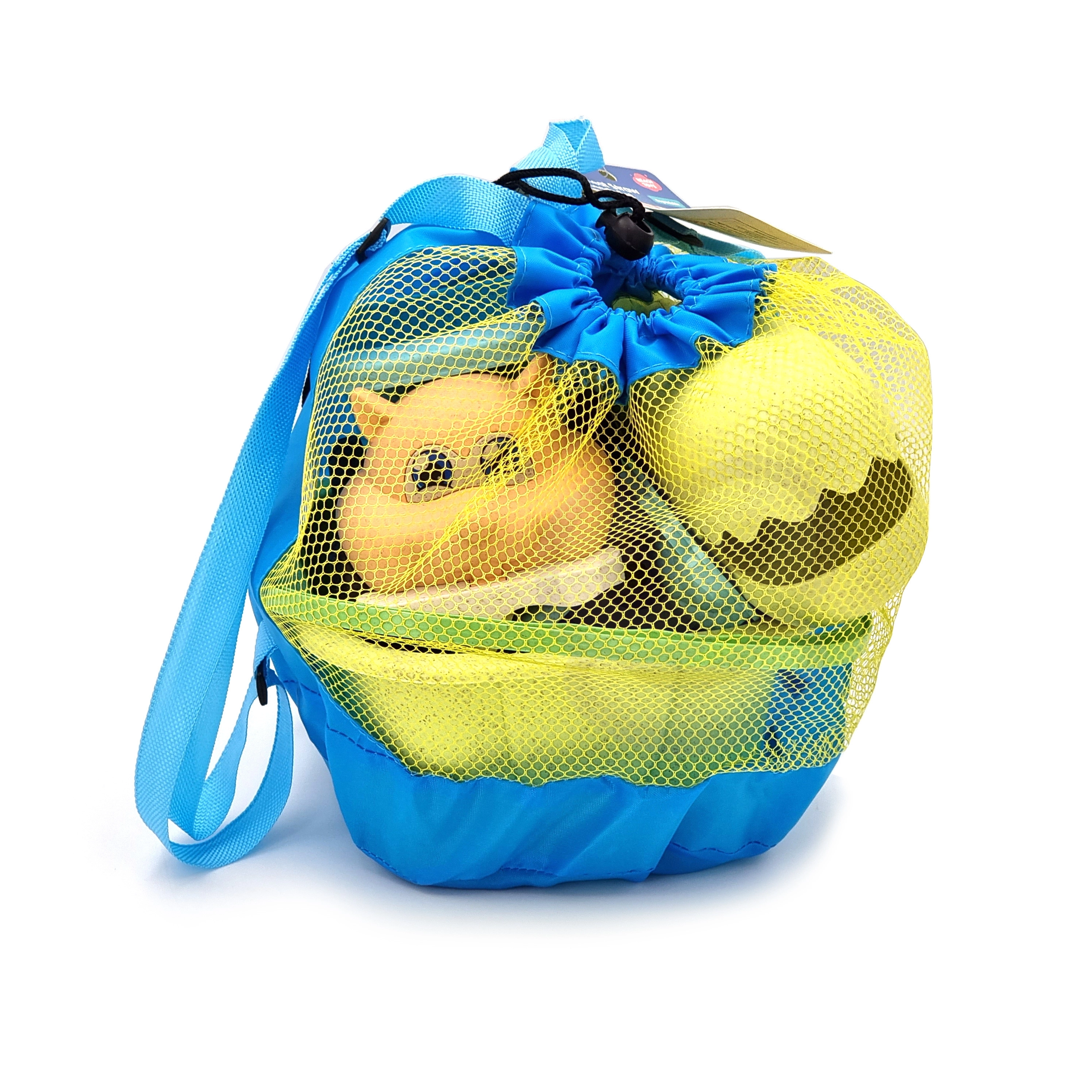 Lagana mrežasta vreća služi kao ruksak – lako prenošenje, brzo otjecanje vode i sušenje igračaka, manje pijeska u torbi nakon plaže.