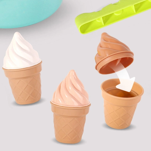 Zabavni set za pijesak Woopie Fun Ice Cream nudi sve za kreativnu igru na igralištu i na plaži. Sadrži čak 15 dijelova uključujući kalupiće za sladoled, pizzu i kruh podijeljive na komade, kanticu i žlicu koju je moguće koristiti i za snijeg. Potiče kreativnost, maštu i finu motoriku.