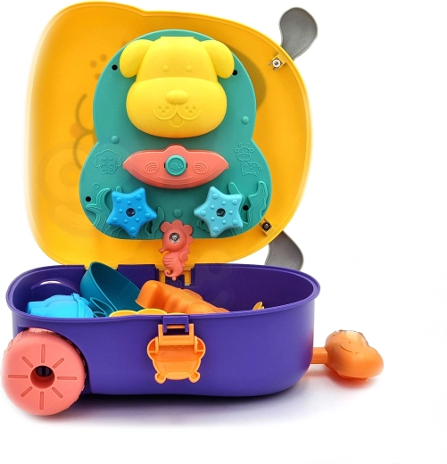 Lagan kovčežić u obliku psića s teleskopskom ručkom i izdržljivim kotačićima olakšava prenošenje i pohranu cijelog seta. Idealan za putovanja, igralište i odmor.