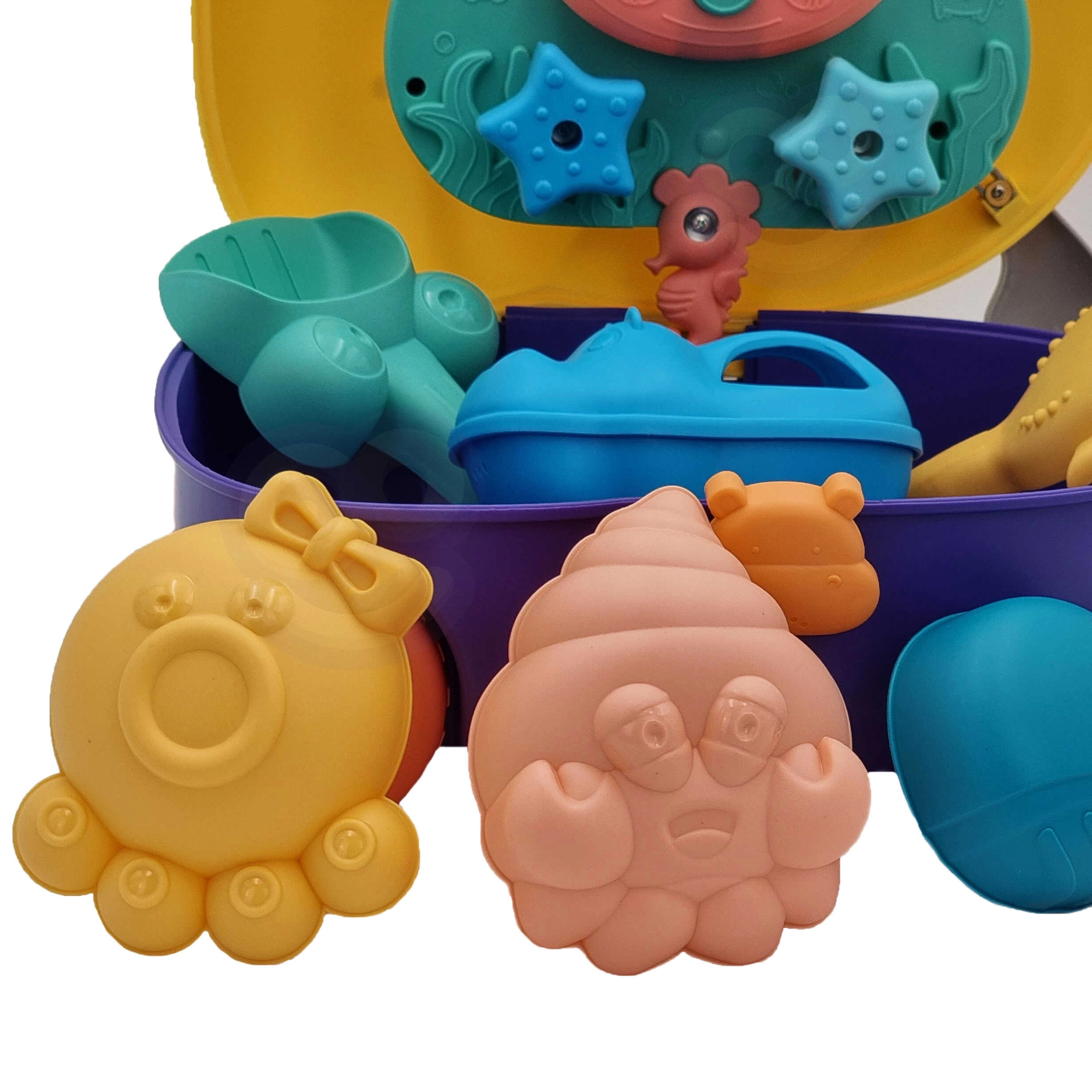 - Dječji set 3-u-1: kovčežić, vodena igra i igračke za pijesak