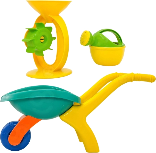 - 1× dječje tačke, 1× pješčani/vodeni mlin, 1× zalijevaca, 1× kanta, 1× lopatica, 1× grablje, 4× kalup