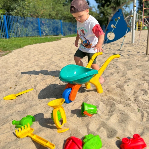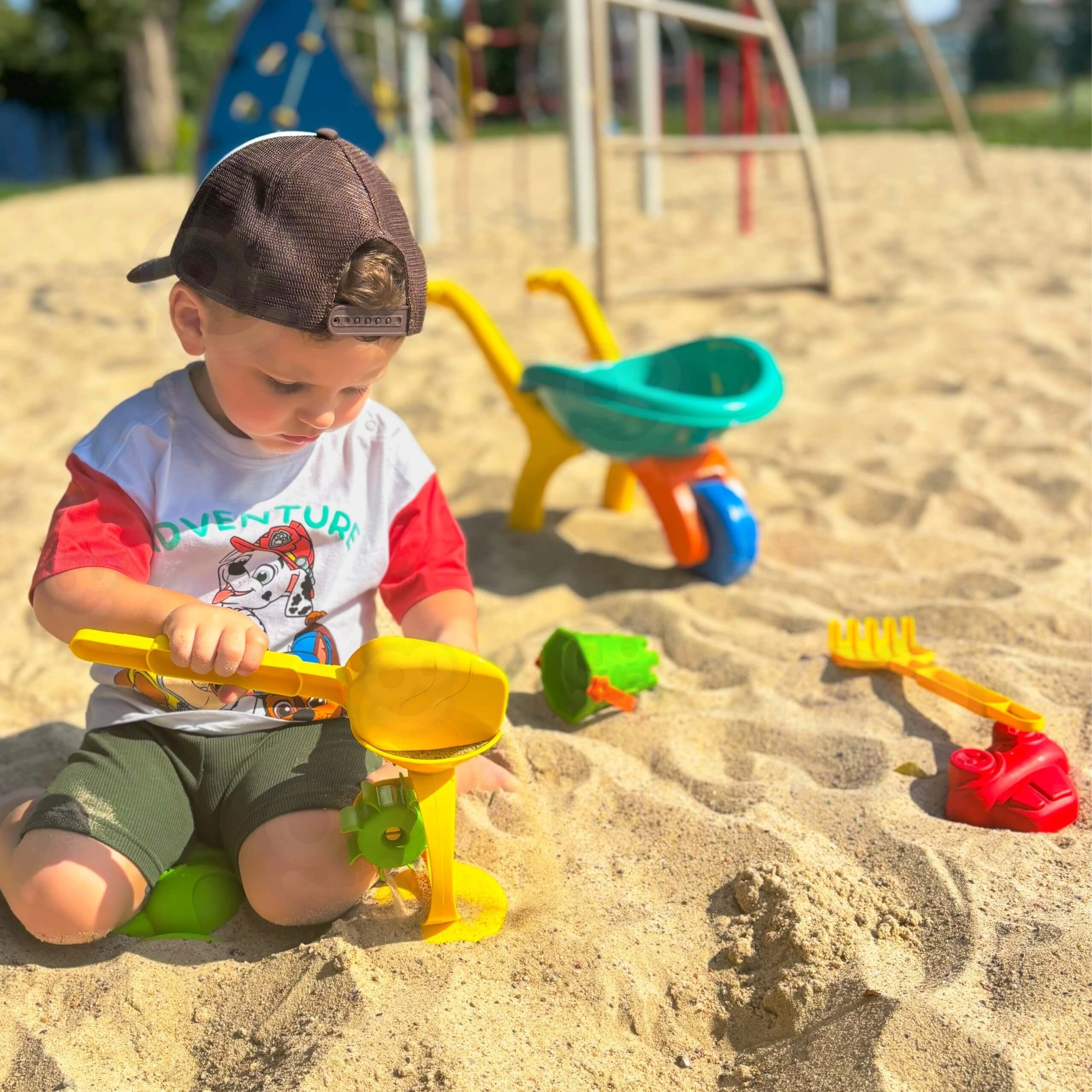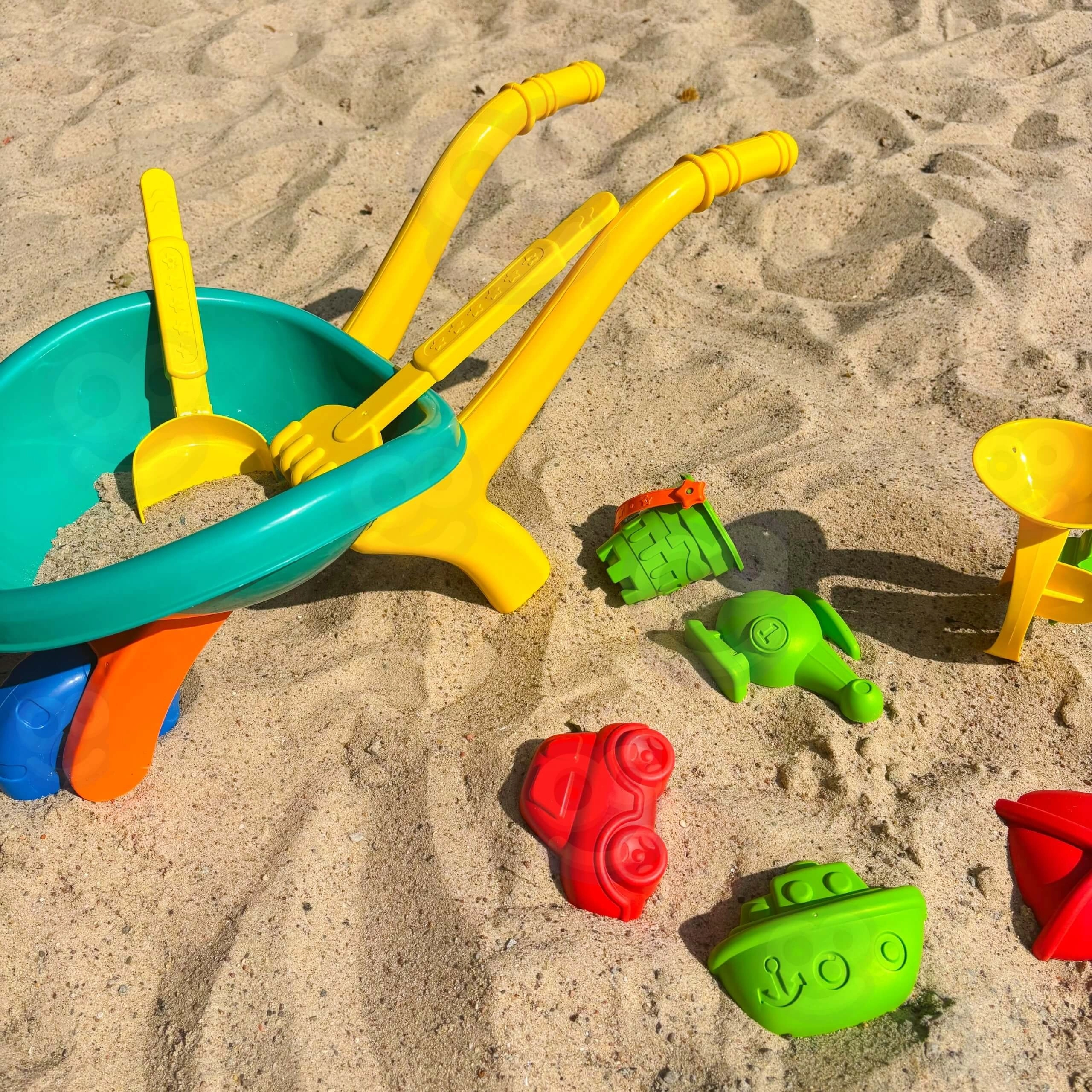Šareni set za pijesak i vrt marke WOOPIE donosi 10 praktičnih dijelova za kreativnu igru na otvorenom i u domu. Djeca mogu voziti pijesak u tačkama, okretati mlin, zalijevati biljke i stvarati uz pomoć kalupa. Lagano, izdržljivo i idealno za pješčanik, plažu i vrt.