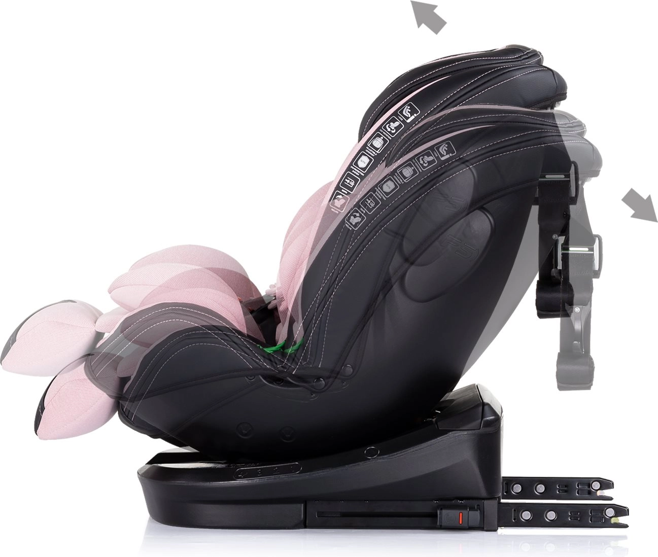 Jednim pokretom okrenete sjedalo prema vratima, pričvrstite dijete i udobno prebacite između smjera suprotnog od vožnje i u smjeru vožnje.