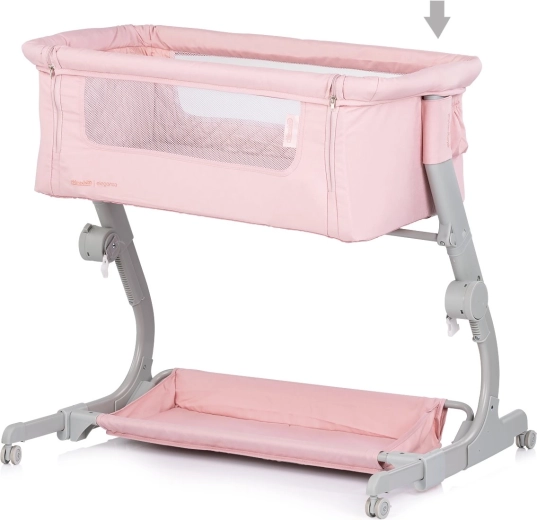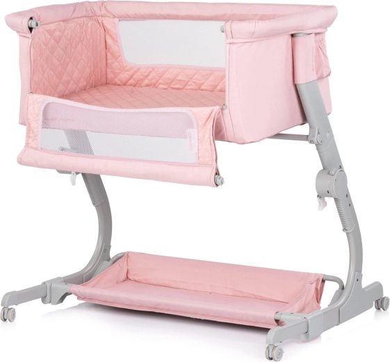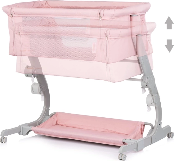 Praktična dječja posteljica i pomoćna postelja 2u1 CHIPOLINO Eleganza u nježnoj ružičastoj nijansi pruža bebi sigurno i ugodno mjesto za spavanje i odmor. Zahvaljujući 3 razine visine, mrežastim stranicama za nadzor i protok zraka, zaključavajućim kotačićima te laganoj, ali stabilnoj metalnoj konstrukciji, idealna je za svakodnevnu upotrebu i putovanja – uključujući kompaktnu putnu torbu.